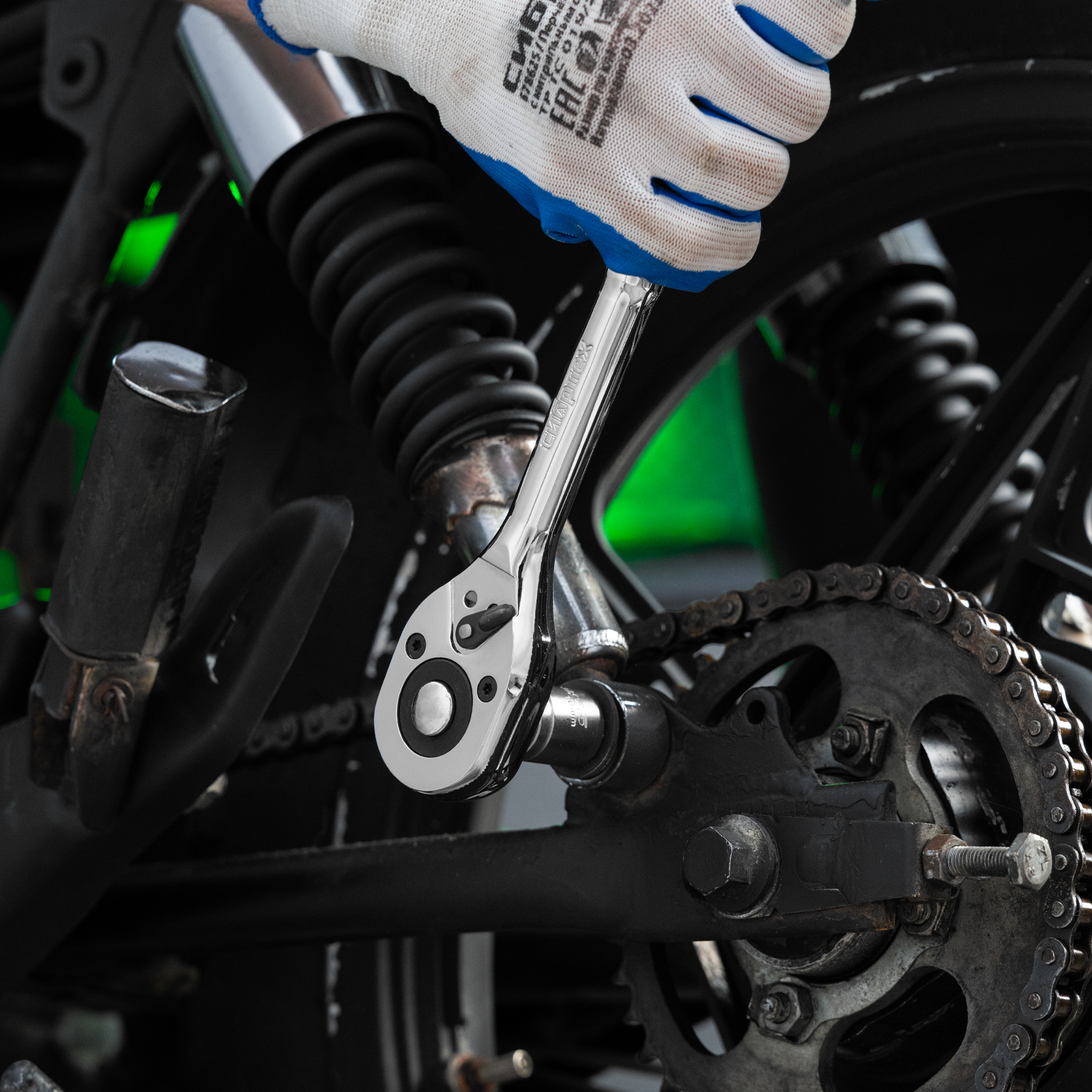 - Функция реверса — при помощи переключателя с металлическим флажком можно одним движением изменить направление вращения трещотки.