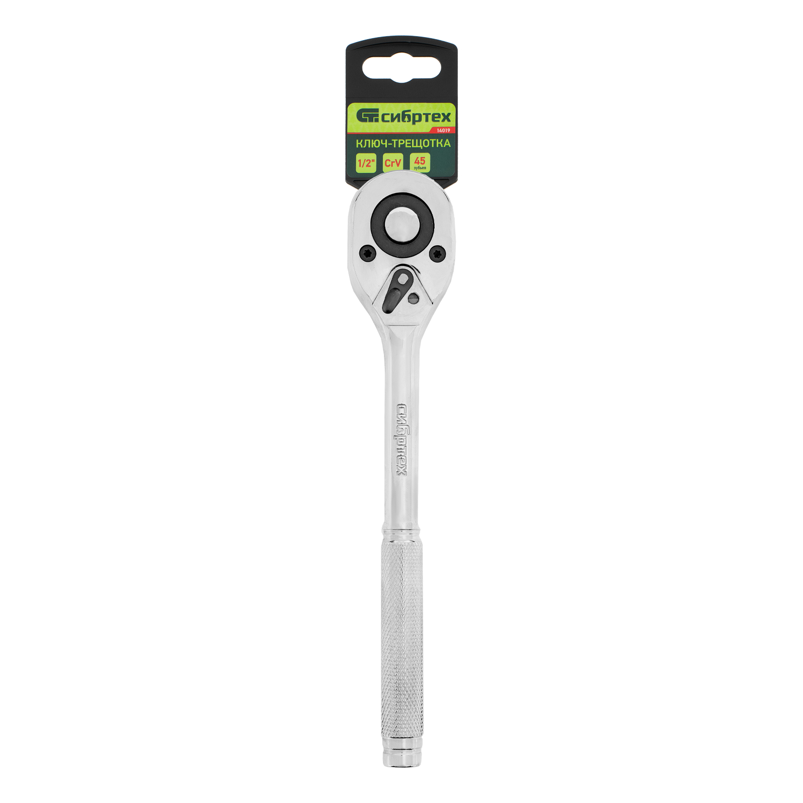Цельнометаллический хромированный ключ-трещотка Сибртех 14019 из стали CrV, с посадочным размером 1/2″ и 45-зубым храповым механизмом, с функцией быстрого сброса, используется для монтажа и демонтажа резьбовых соединений. Предназначен для установки торцевых головок, адаптеров и удлинителей. Цельнометаллическая конструкция отличается повышенной прочностью, что позволяет работать со значительным усилием. Инструмент пригодится дома, в гараже и в поездке.