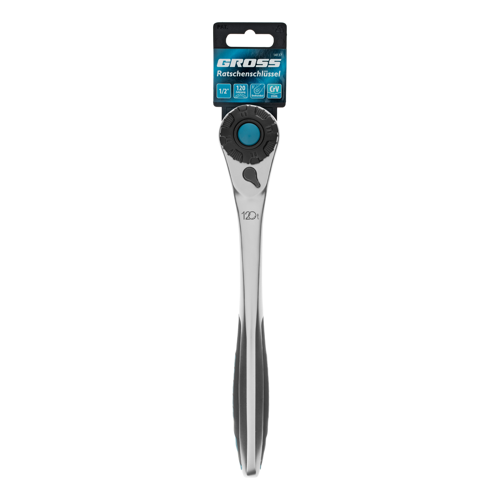 Ключ-трещотка 1/2", CrV, 120 зубьев, с быстрым сбросом, цельнометаллический, хром Gross в Уфе