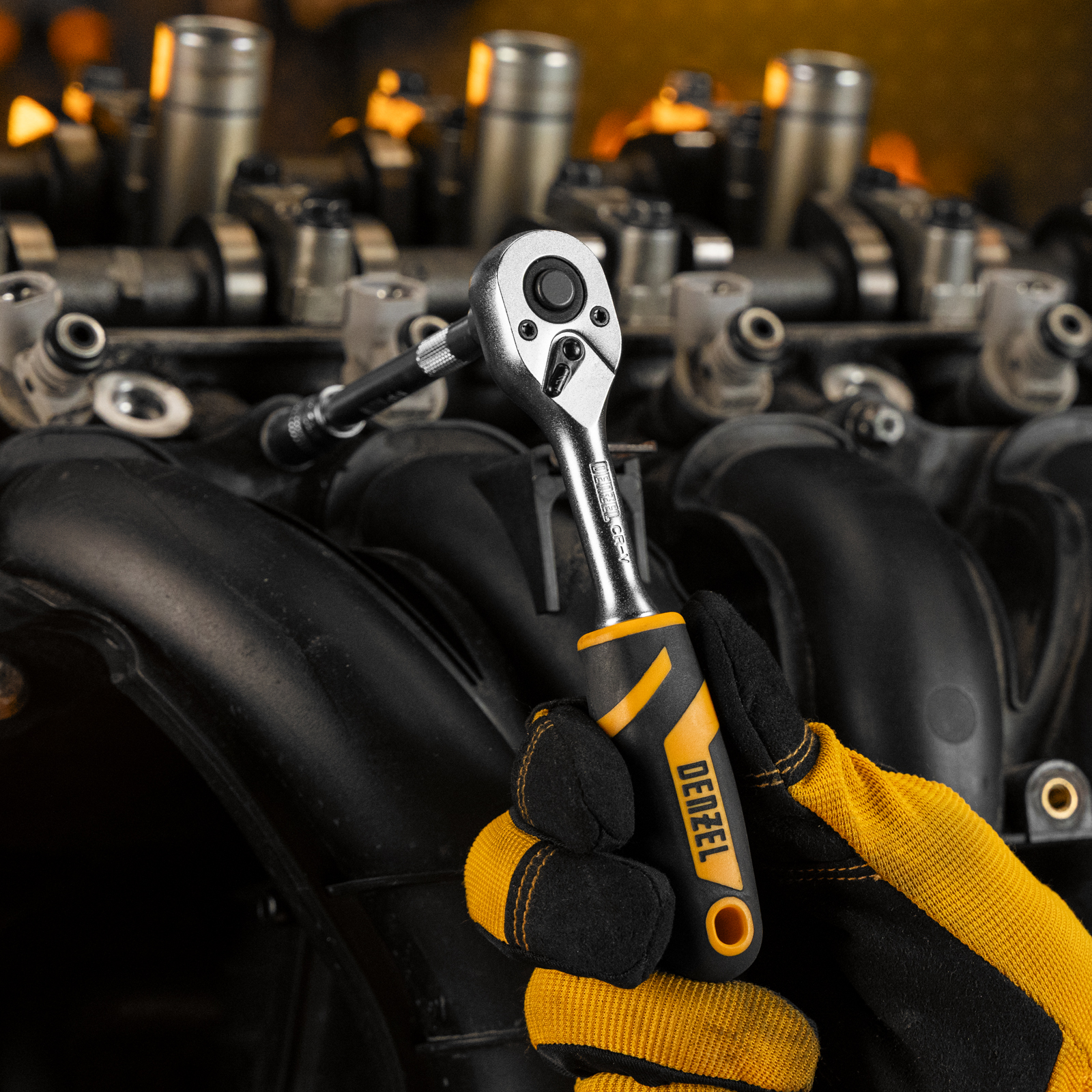 Ключ-трещотка Denzel 14031 из стали CrV, с присоединительным квадратом 1/4", с быстрым сбросом и храповым механизмом с 90 зубьями, предназначен для установки торцевых головок, а также адаптеров и удлинителей с посадочным размером соответствующего размера. Угол поворота трещотки составляет всего 4°, что упрощает работу в труднодоступных местах. Инструмент будет полезен в сервисном центре, на СТО, а также пригодится дома или в поездке.