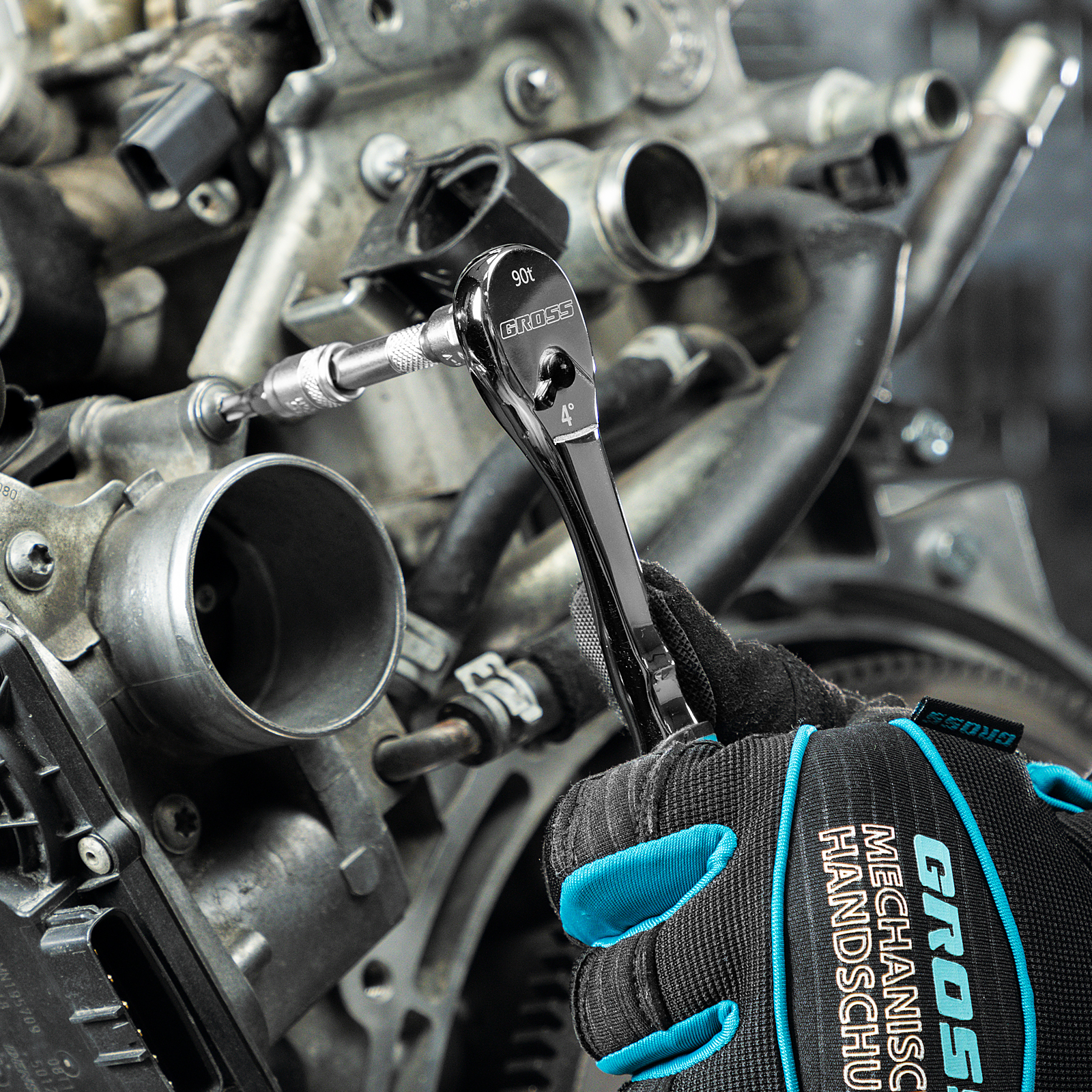 Ключ-трещотка 1/4", CrV, 90 зубьев, усиленный, хром Gross в Уфе