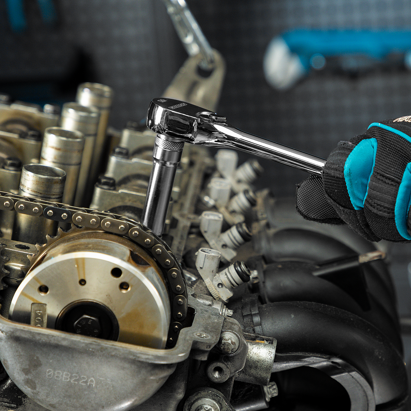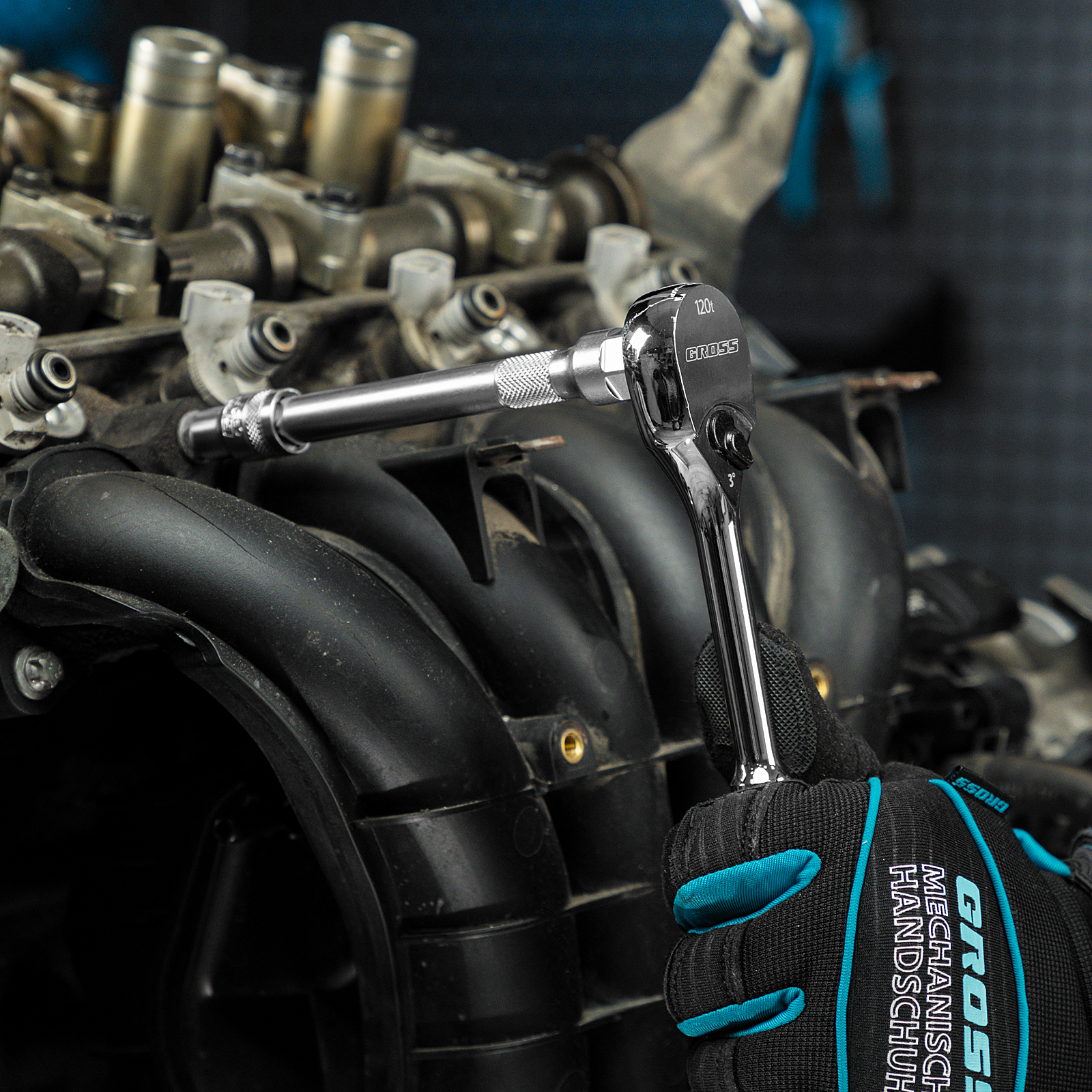 Цельнометаллический ключ-трещотка Gross 14051 с присоединительным квадратом 3/8" оснащен храповым механизмом со 120 зубьями. Предназначен для установки торцевых головок, а также адаптеров и удлинителей с посадочным отверстием соответствующего размера. Шаг храпового механизма составляет 3°, поэтому инструмент оптимален для использования в труднодоступных местах. Будет полезен в сервисном центре, на СТО, а также пригодится дома или в поездке.