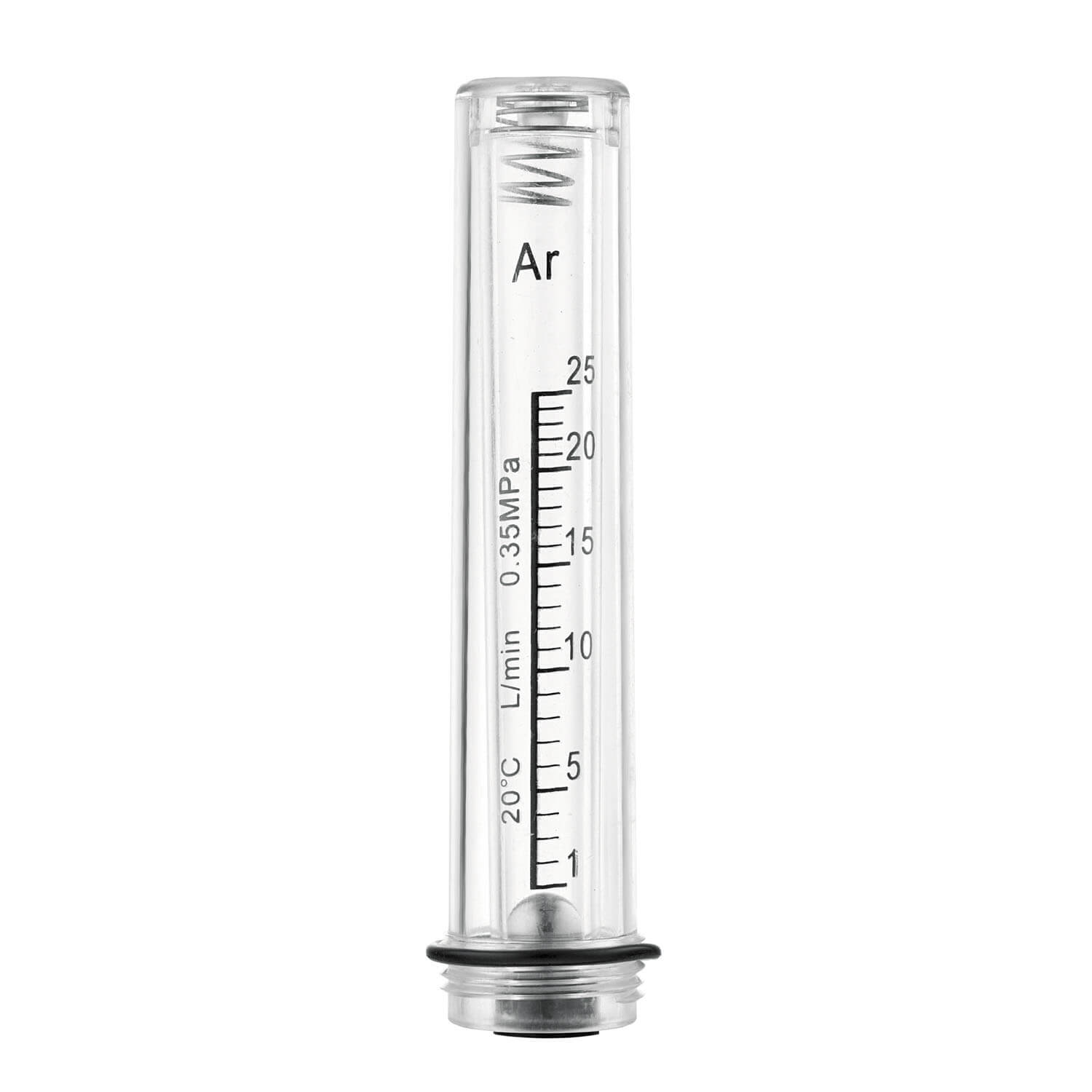 Колба для измерения объемного расхода газообразного аргона (Ar). Колба – это сменный элемент смесителя газов MIXER 2Р (AR+CO₂), который используется для получения двухкомпонентных газовых смесей стабильного состава изменяемым соотношением газов.