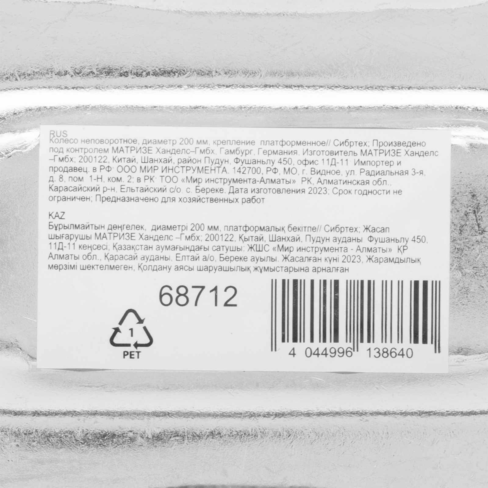 Колесо неповоротное D 200 мм, крепление платформенное Сибртех в Уфе