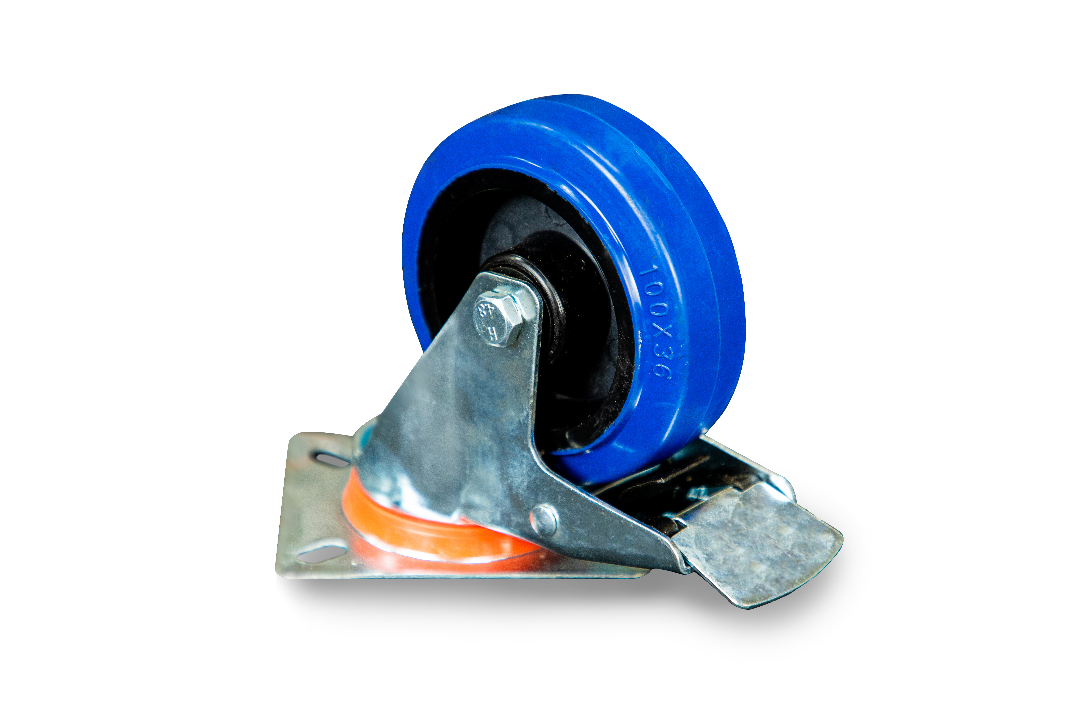 Колесо поворотное из эластичной резины MW70 100 мм с тормозом в Уфе