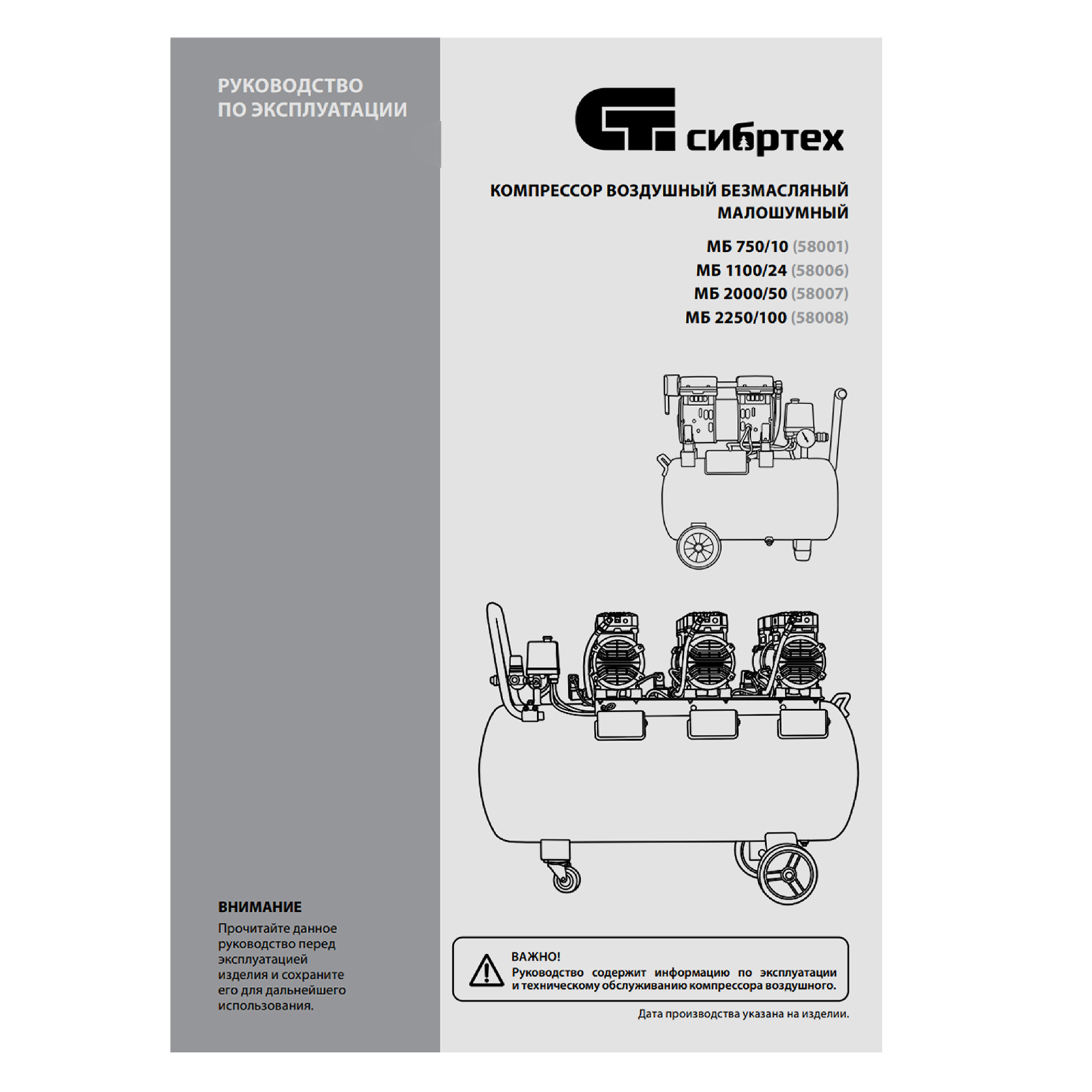 Компрессор - 1 штКолесо с крепежом - 2 штВиброопора с крепежом - 2 штВозхдушный фильтр - 2 штРуководство по эксплуатации с гарантийным талоном - 1 шт |