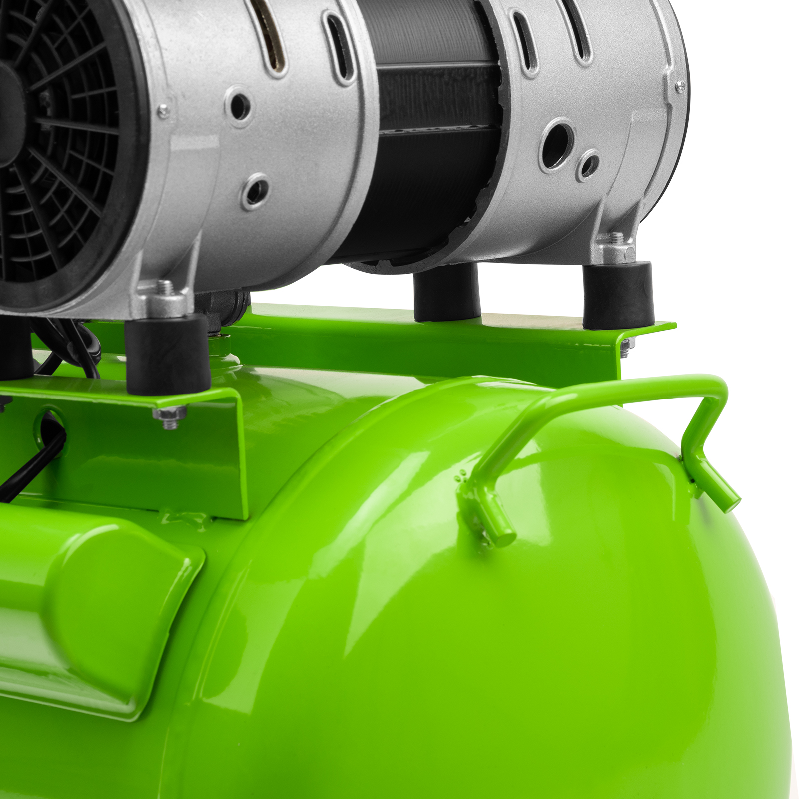 - Продуманная конструкция — 2 виброопоры обеспечивают устойчивость компрессорного блока и гасят колебания, возникающие во время работы.