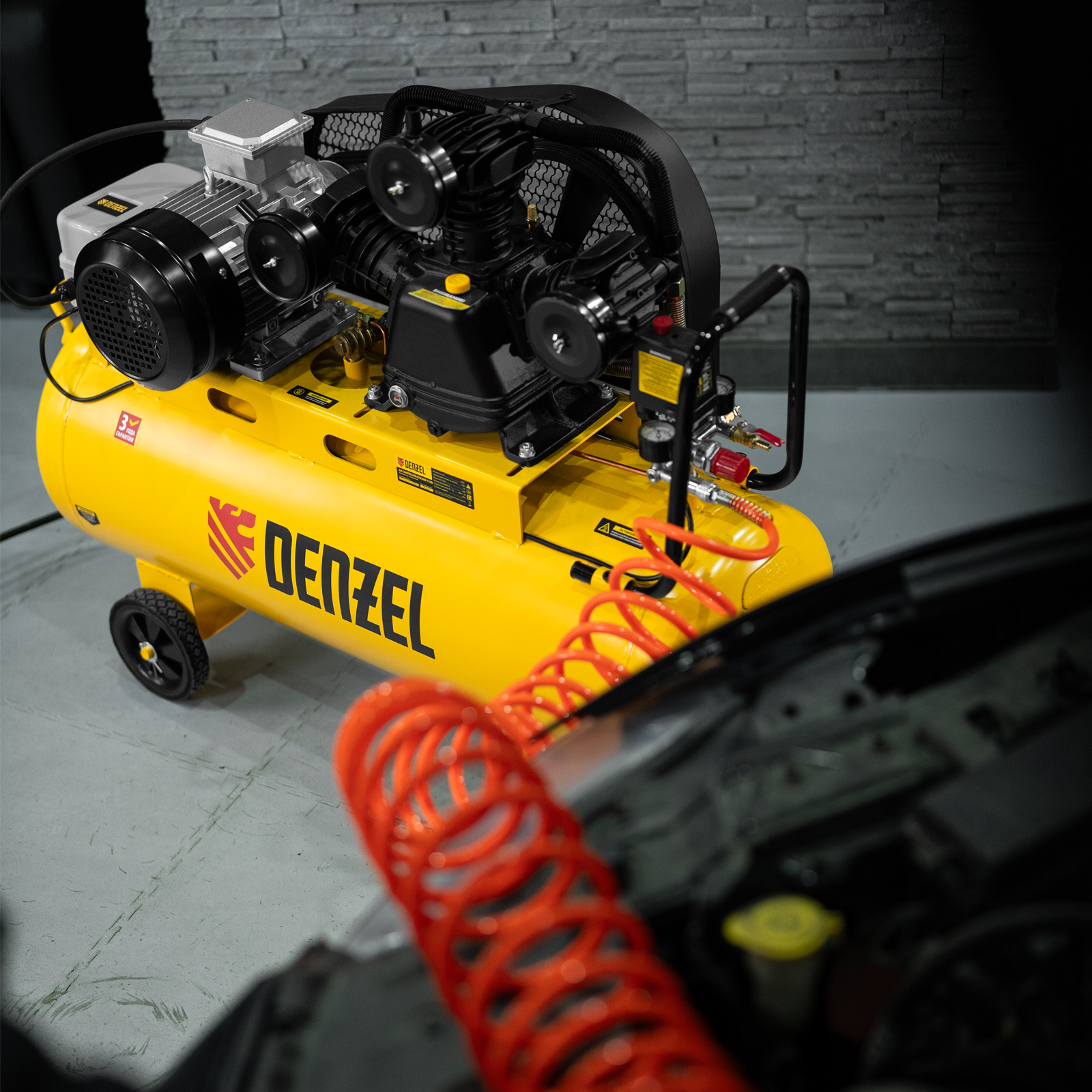 Компрессор воздушный BCW3000-T/100, ременный привод, 3.0 кВт, 100 литров, 520 л/мин Denzel в Уфе