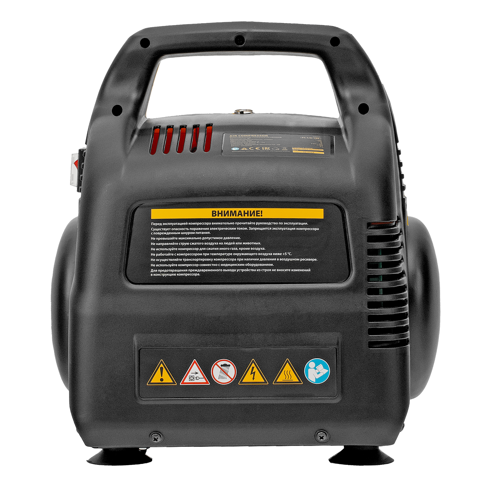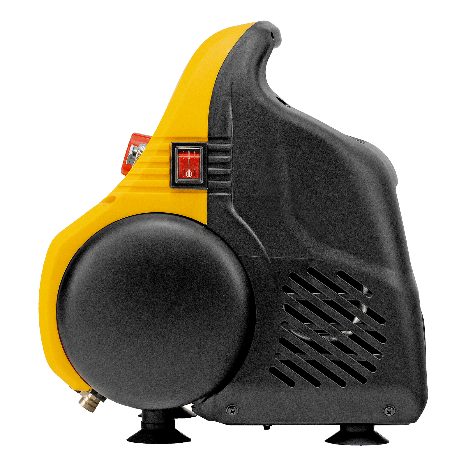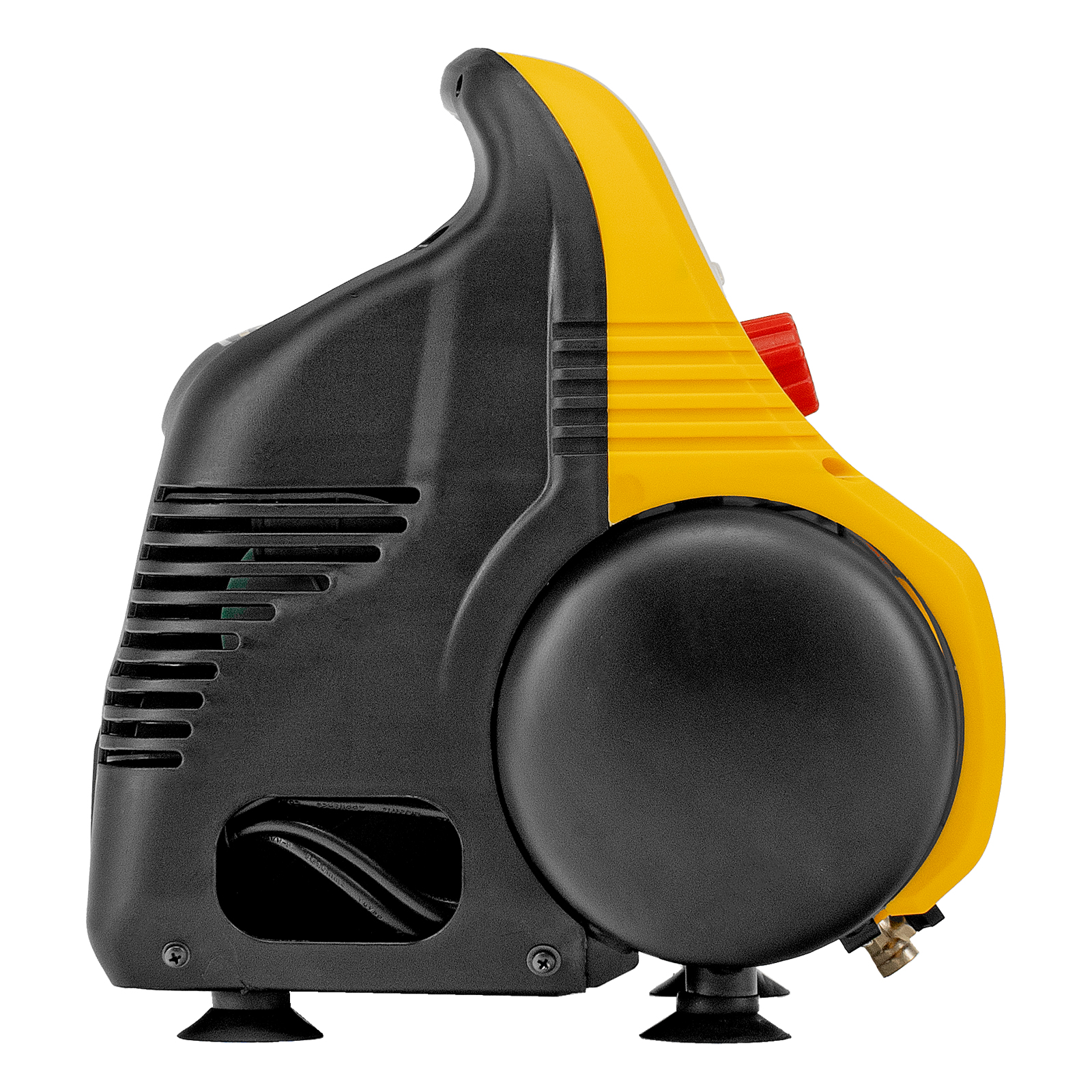 - Отсутствие вибраций и устойчивость — резиновые ножки-присоски гасят колебания от работающего компрессора и надежно фиксируют его на месте.