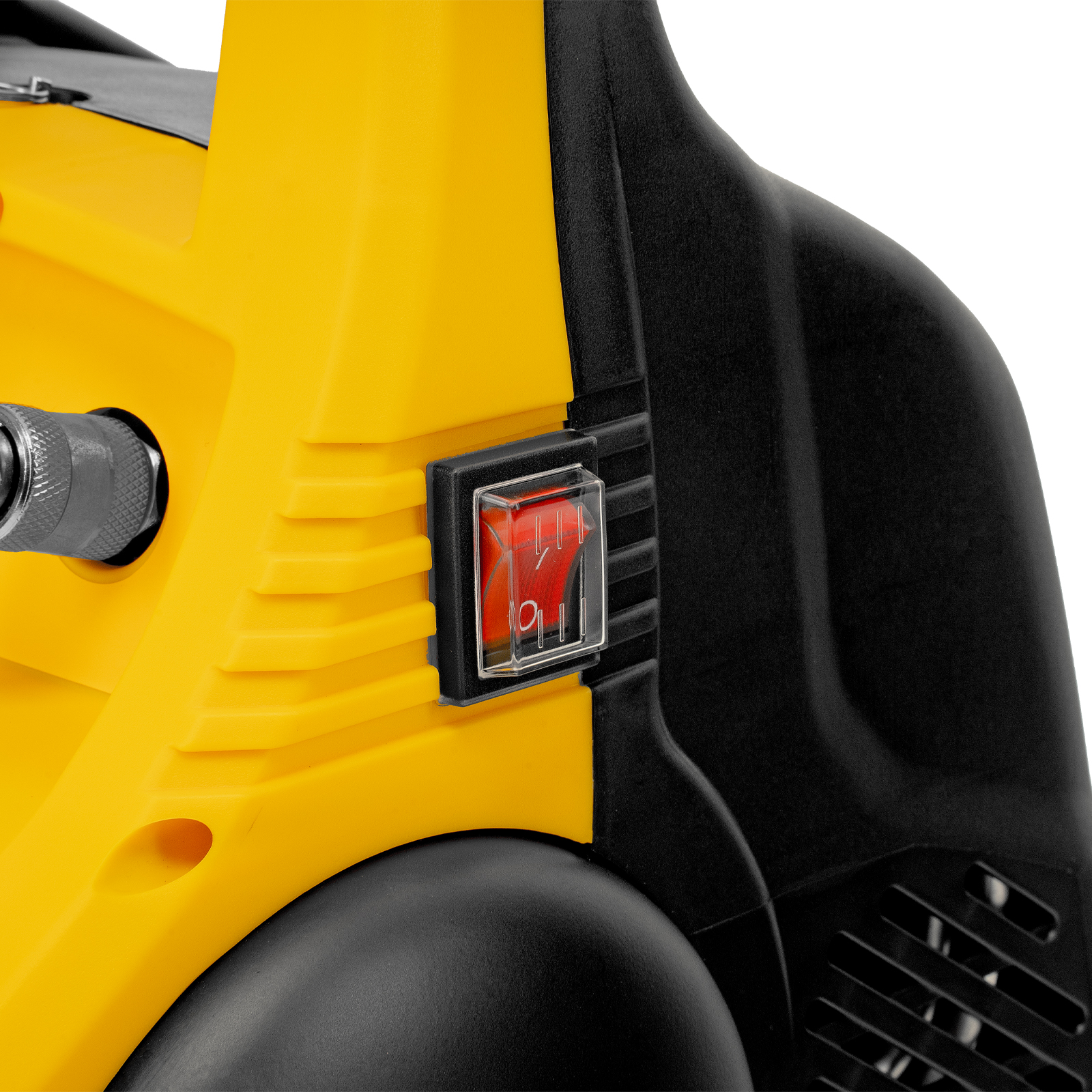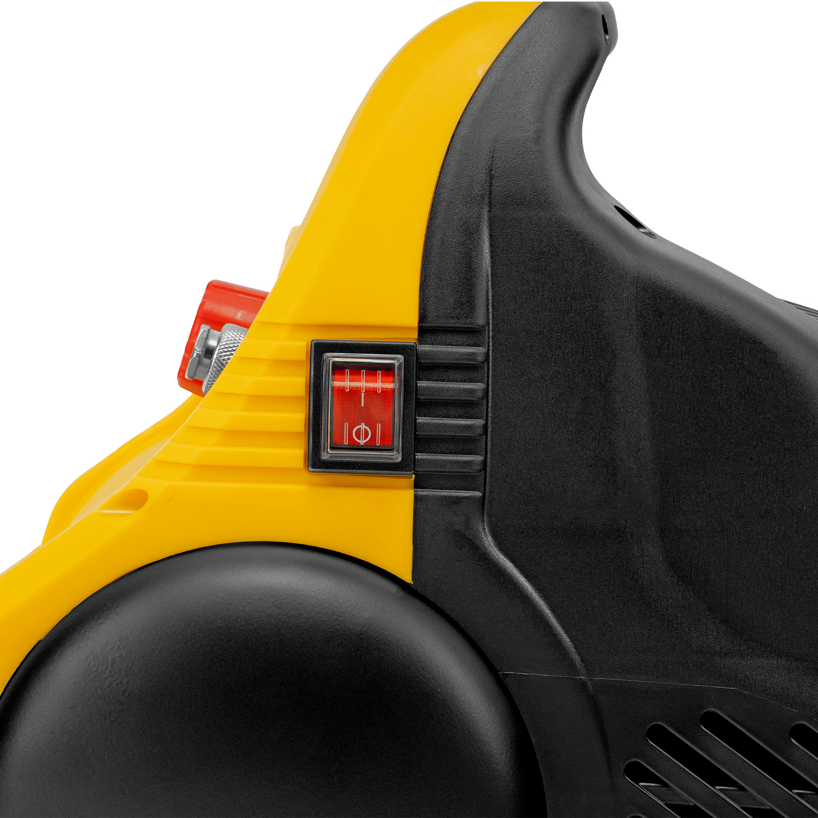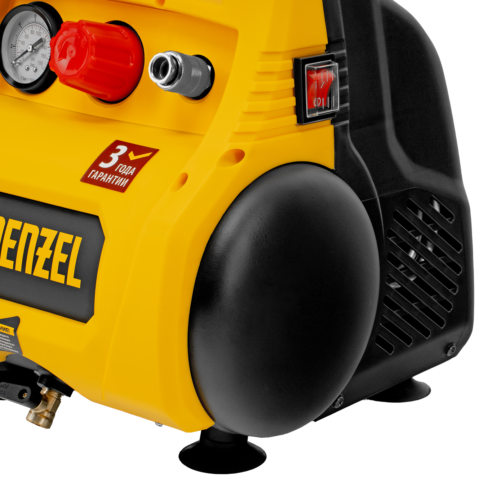 - Отсутствие вибраций и устойчивость — резиновые ножки-присоски гасят колебания от работающего компрессора и надежно фиксируют его на месте.