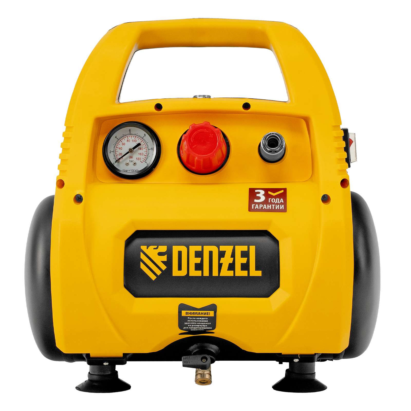- Быстрое избавление от конденсата — влага из ресивера удаляется в два счета простым поворотом вентиля, без использования гаечного ключа.