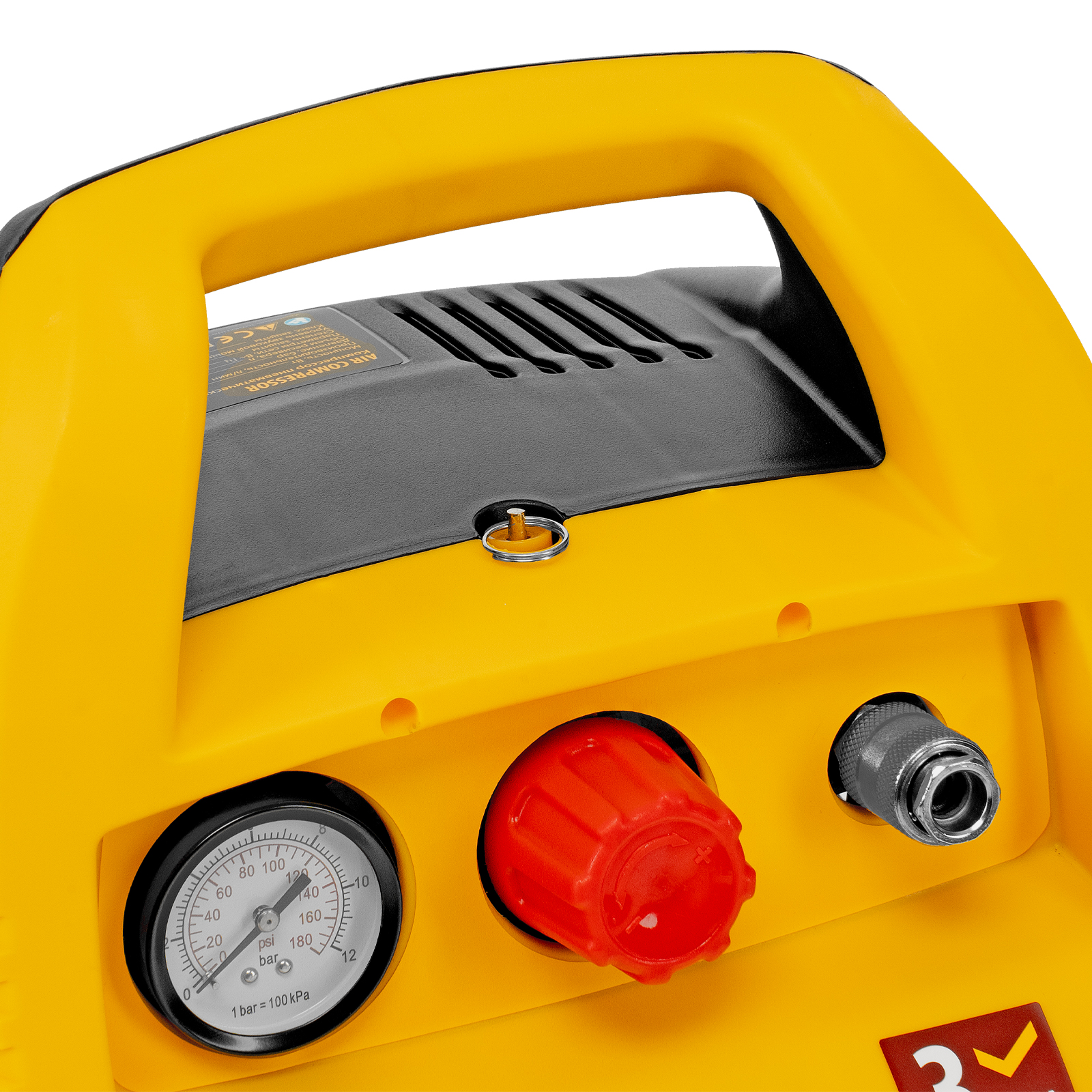 - Предохранительный клапан — изделие надежно защищено от превышения давления в ресивере, что упрощает работу и продлевает срок службы.