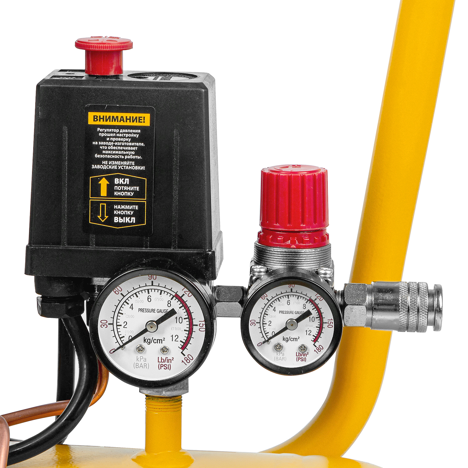 - Два манометра — удобно контролировать давление на выходе и в ресивере.