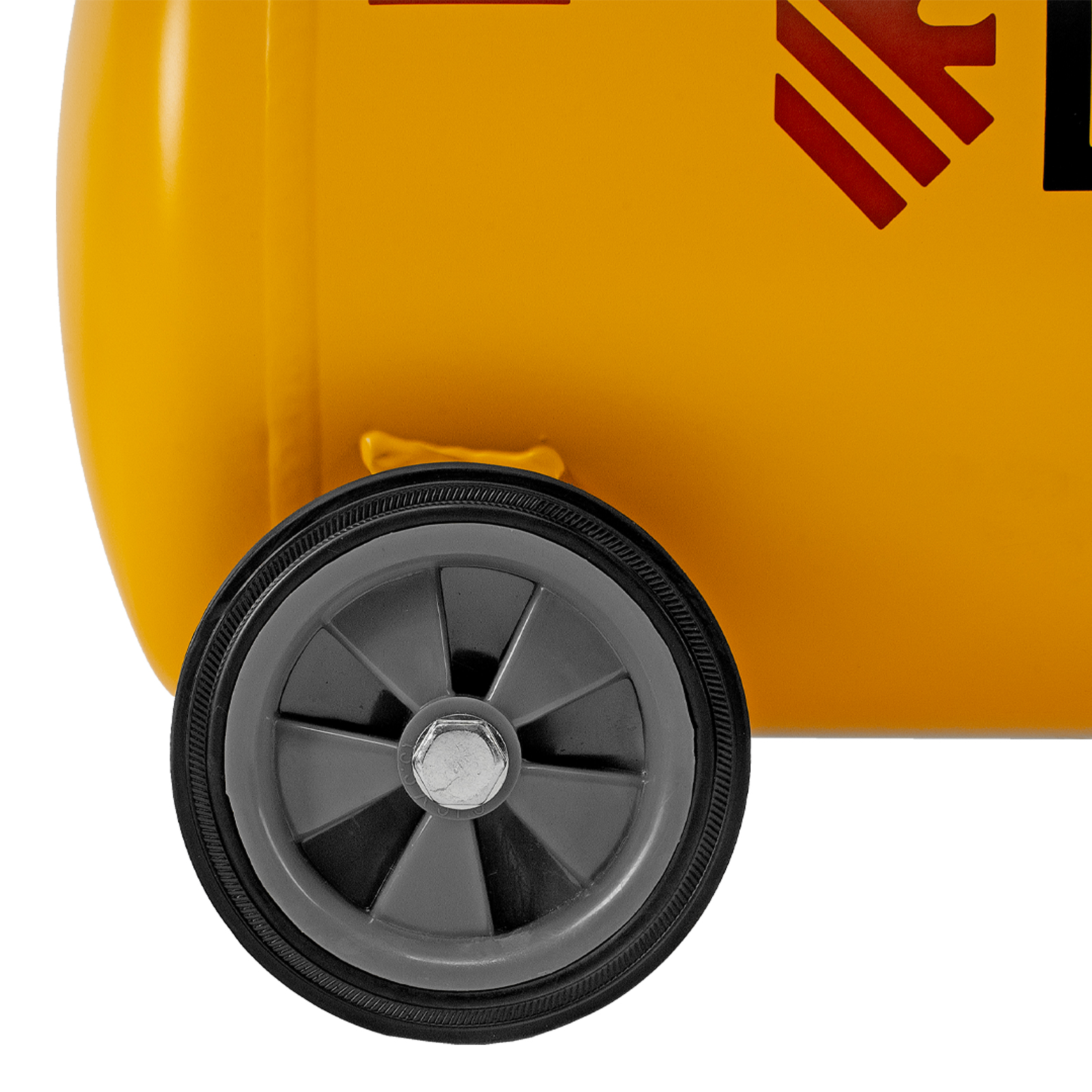 - Комфортное перемещение по рабочей зоне — компактный компрессор оснащен 2 колесами и ручкой.