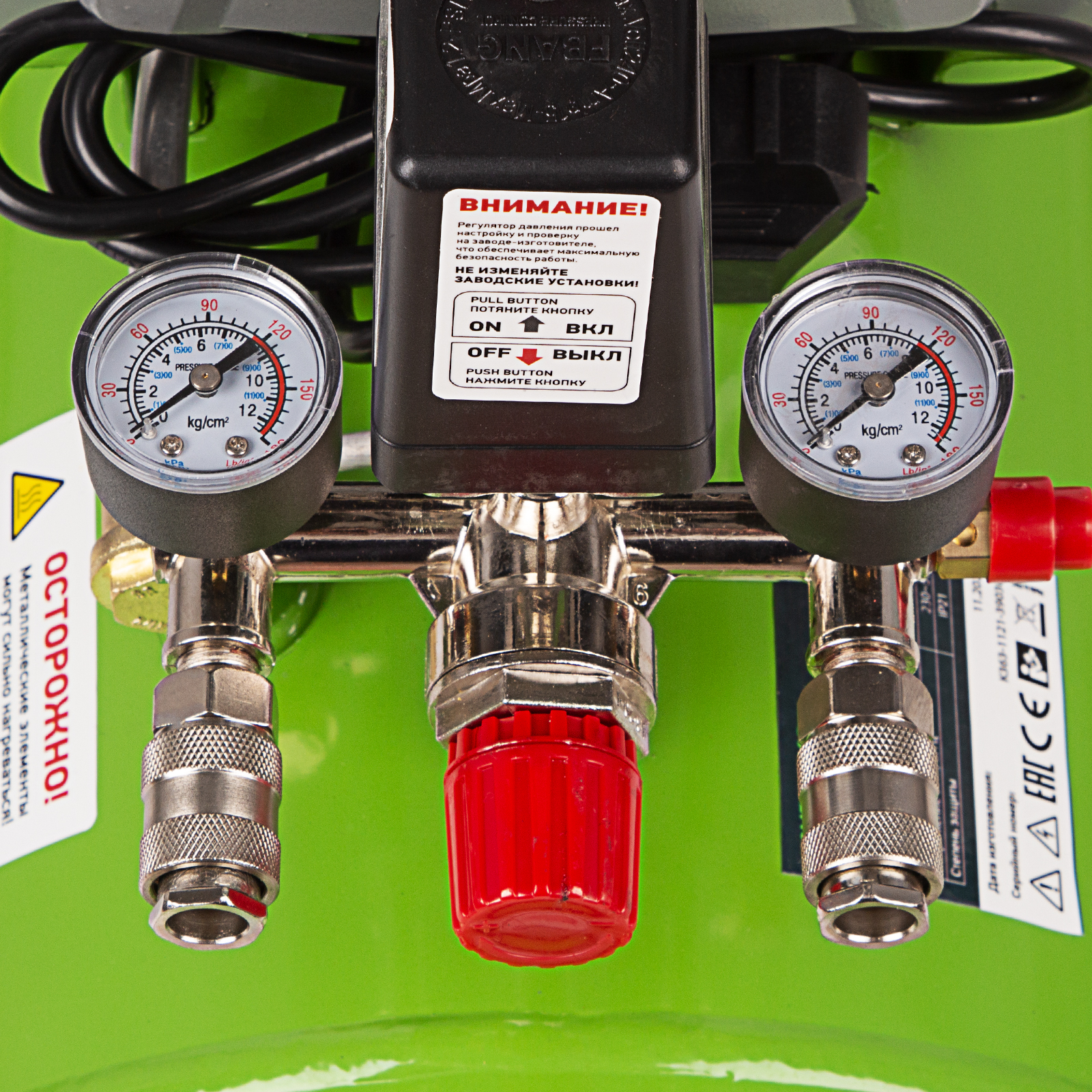 - Моментальное подключение инструмента — 2 коннектора европейского типа упрощают соединение компрессора с пневмосистемами.