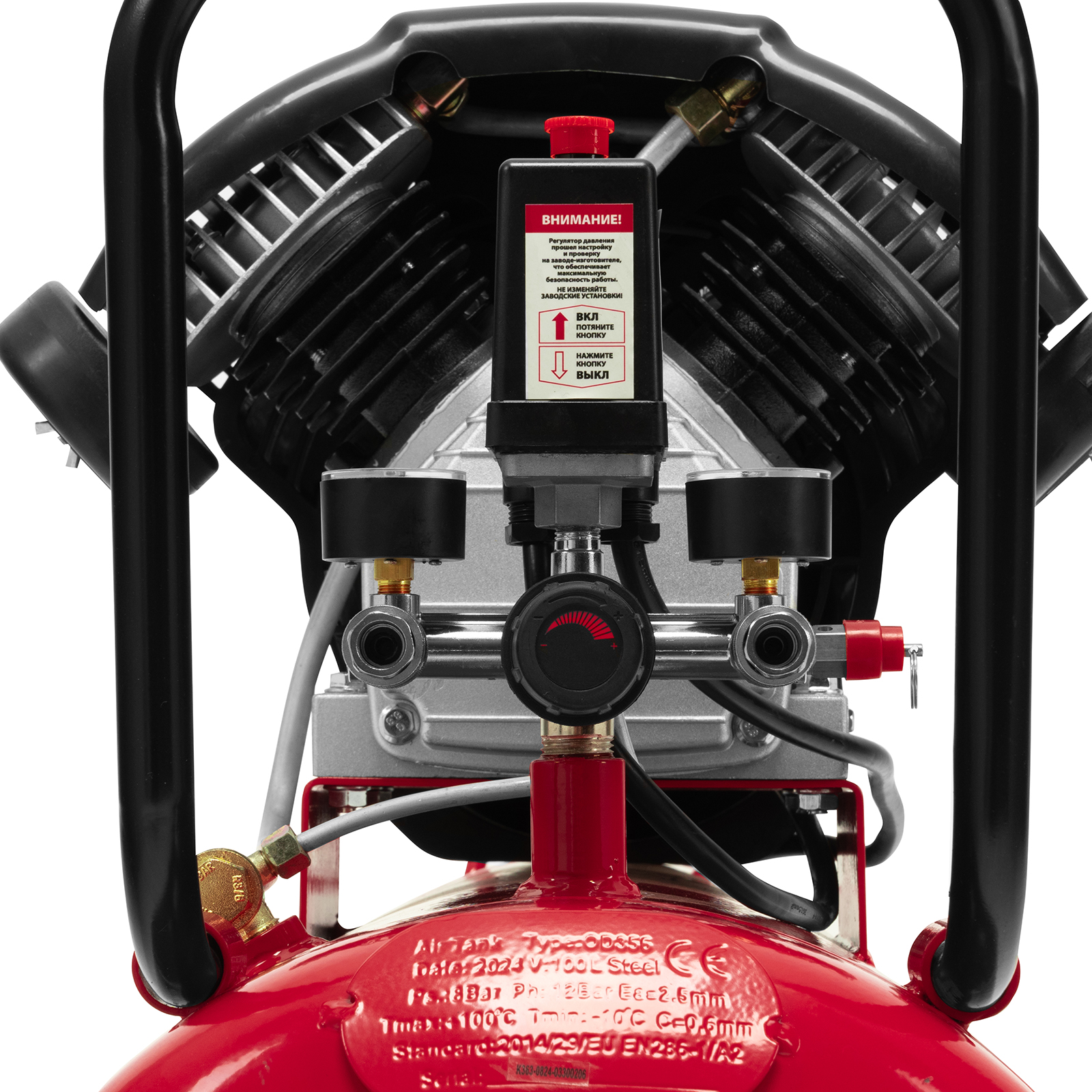 - Мобильность — благодаря колесам и рукоятке компрессор удобно разворачивать и перемещать по рабочей площадке.