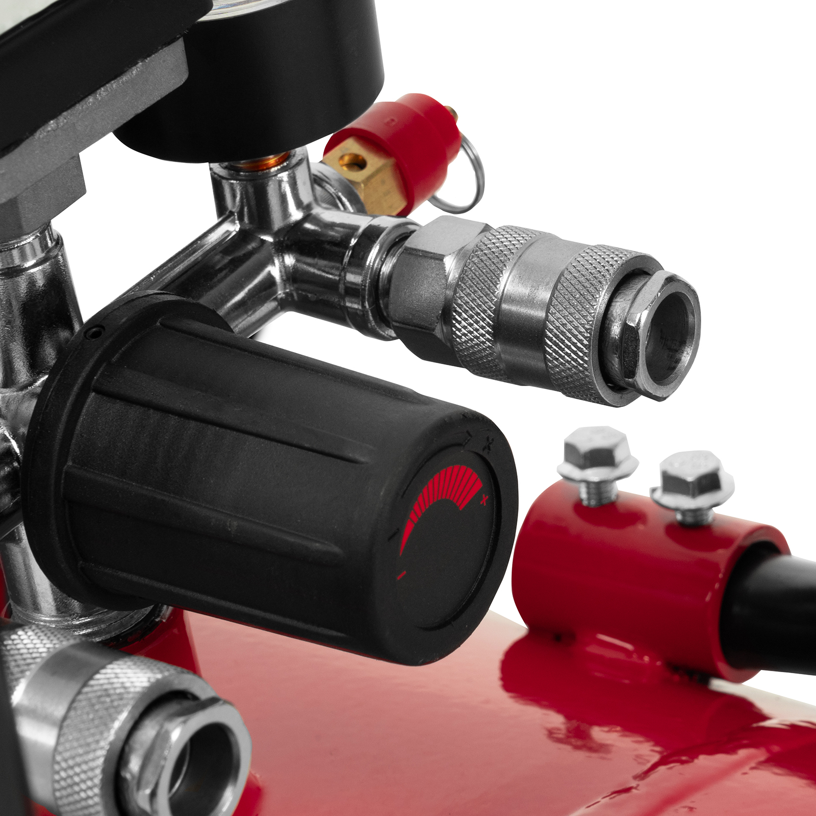 - Удобный контроль рабочих параметров — 2 манометра и регулятор позволяют отслеживать и корректировать давление для корректной работы пневмоинструмента.