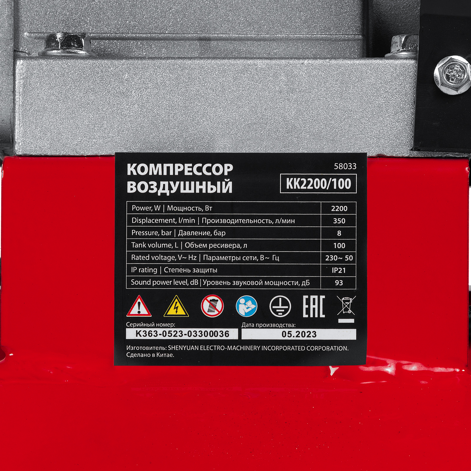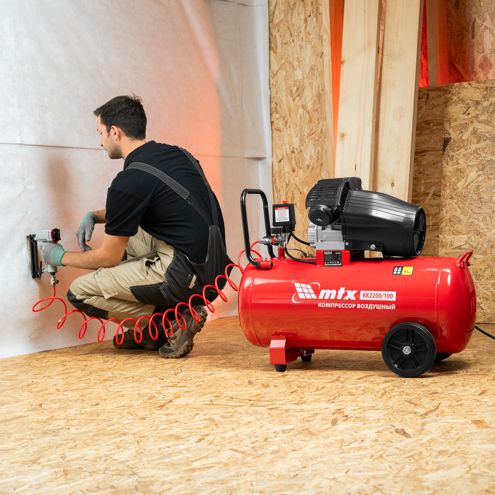 Компрессор воздушный КК-2200/100, 2,2 кВт, 350 л/мин, 100 л, прямой привод, масляный MTX в Уфе