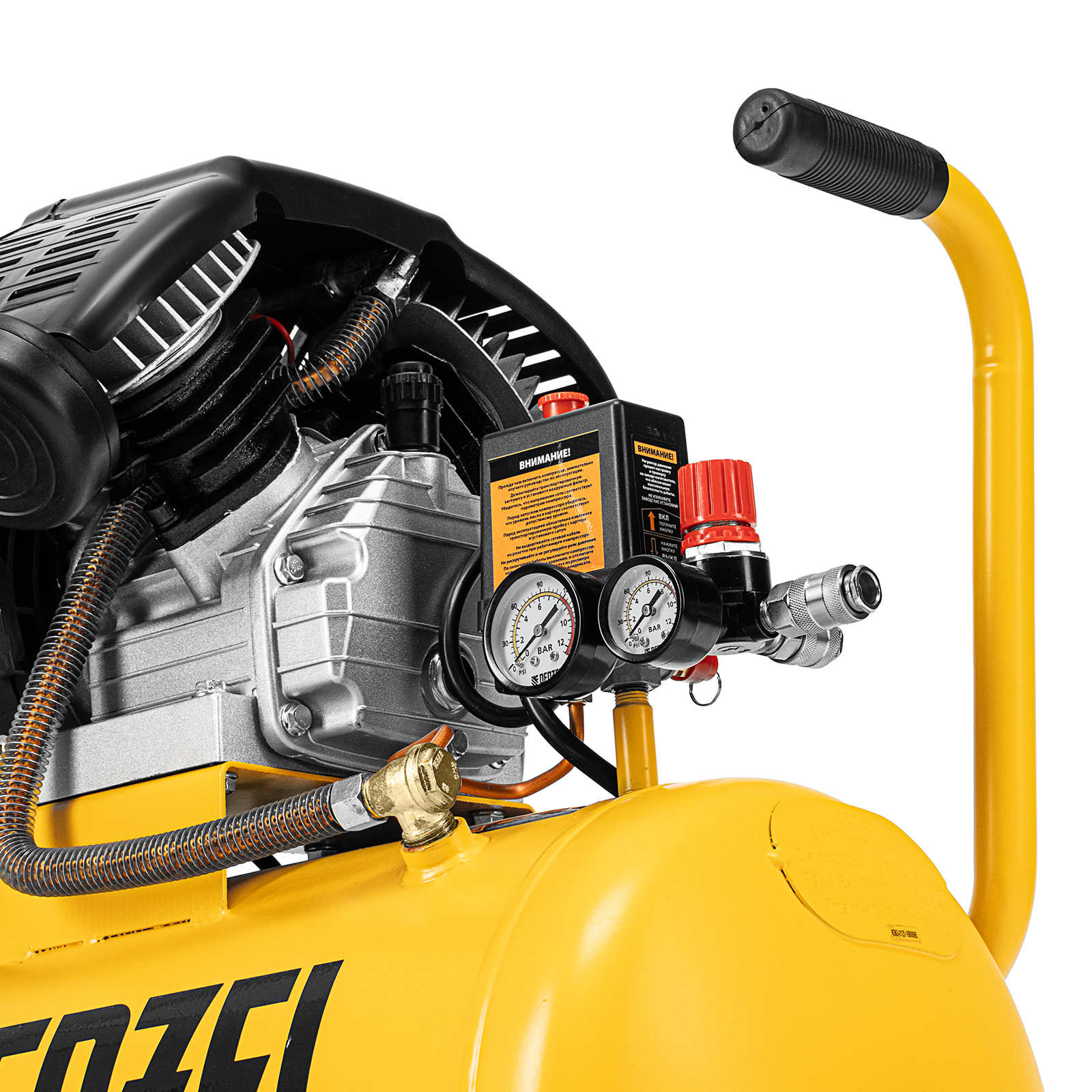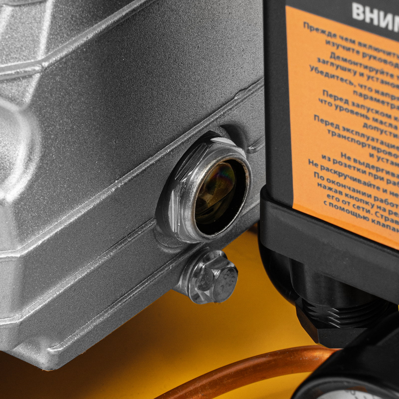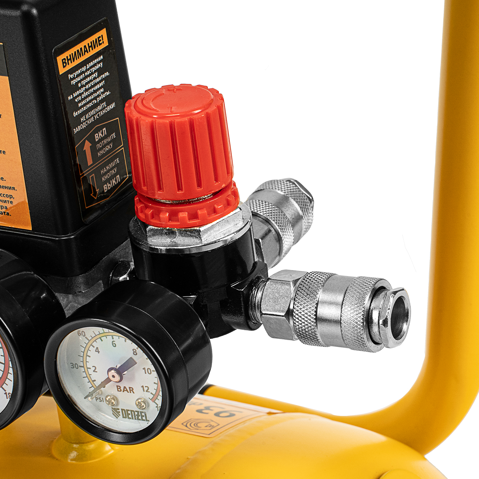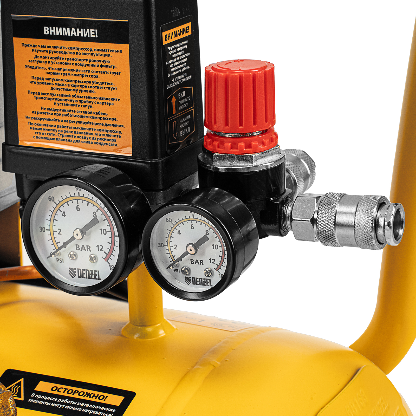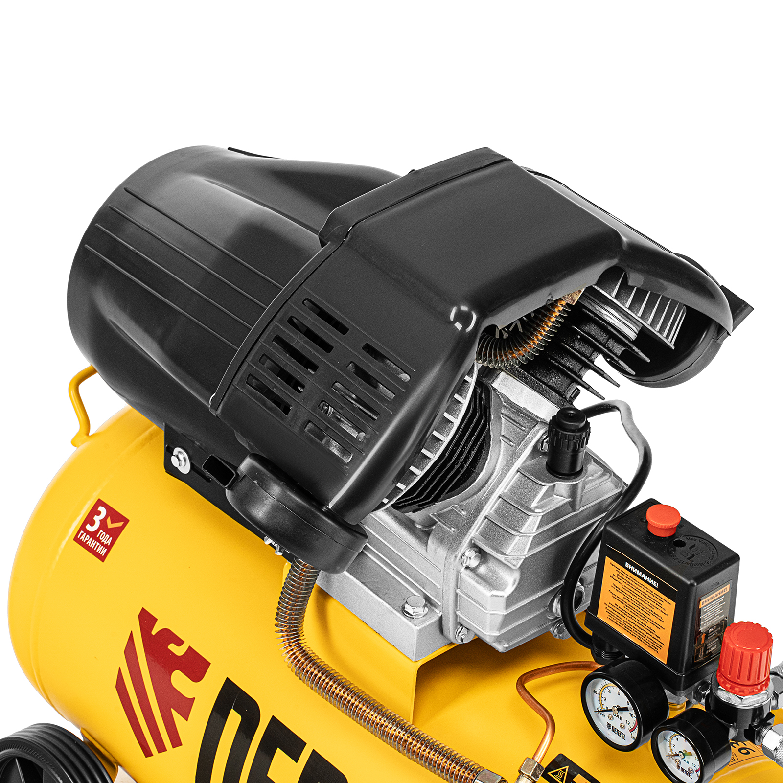 Воздушный компрессор с прямым приводом Denzel DCV1800/50 58168 мощностью 1,8 кВт и производительностью на входе 320 л/мин, с объемом ресивера 50 л, подходит для обеспечения длительной работы пневмогайковерта, пневмозубила, пневмодрели, пневмомолотка или другого пневмоинструмента. Быстроразъемные коннекторы Рапид (Евро) облегчают подключение пневмомагистралей. Эффективная система смазки снижает износ деталей и уменьшает нагрузку на двигатель, что позволяет использовать компрессор в профессиональной сфере.