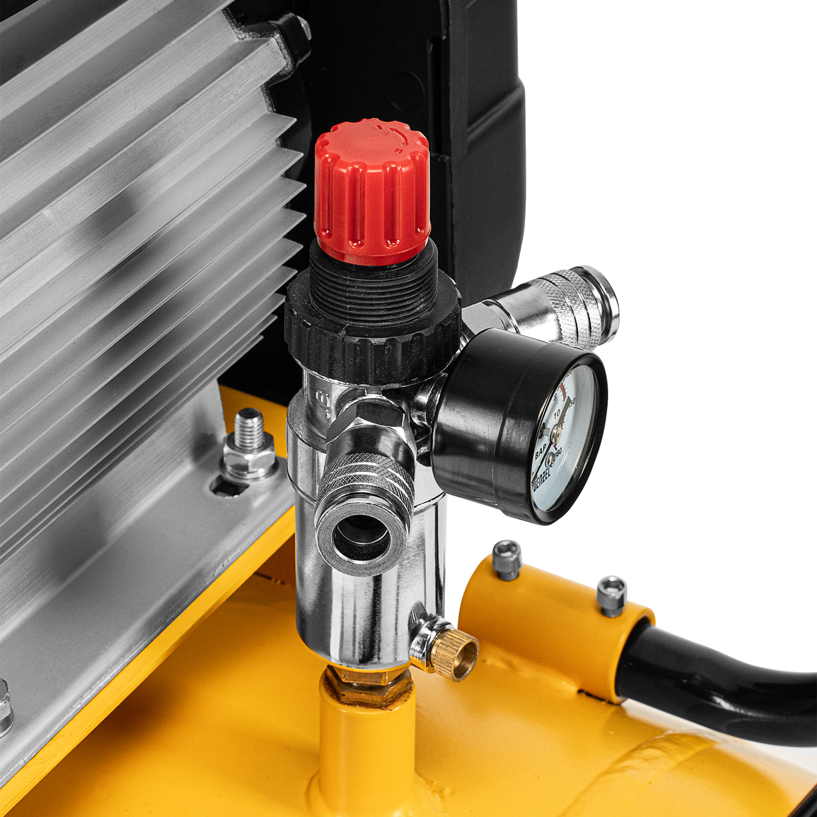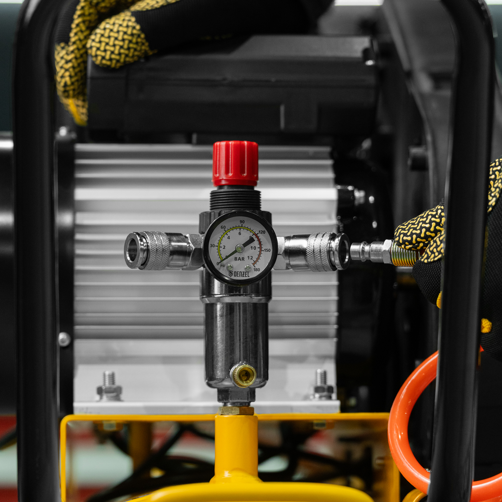 - Регулировка давления на выходе — можно установить оптимальное значение для подключения пневмоинструмента.