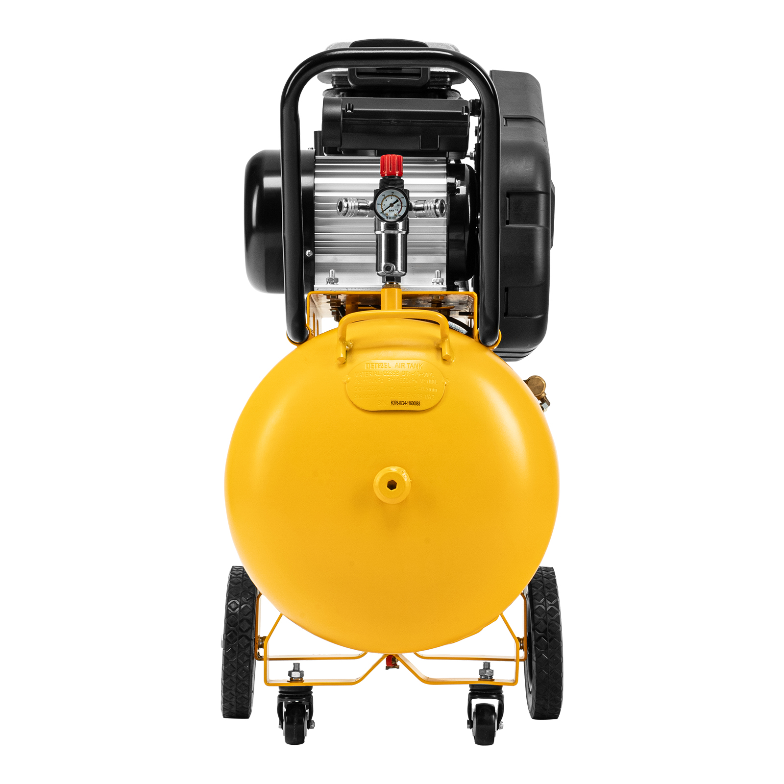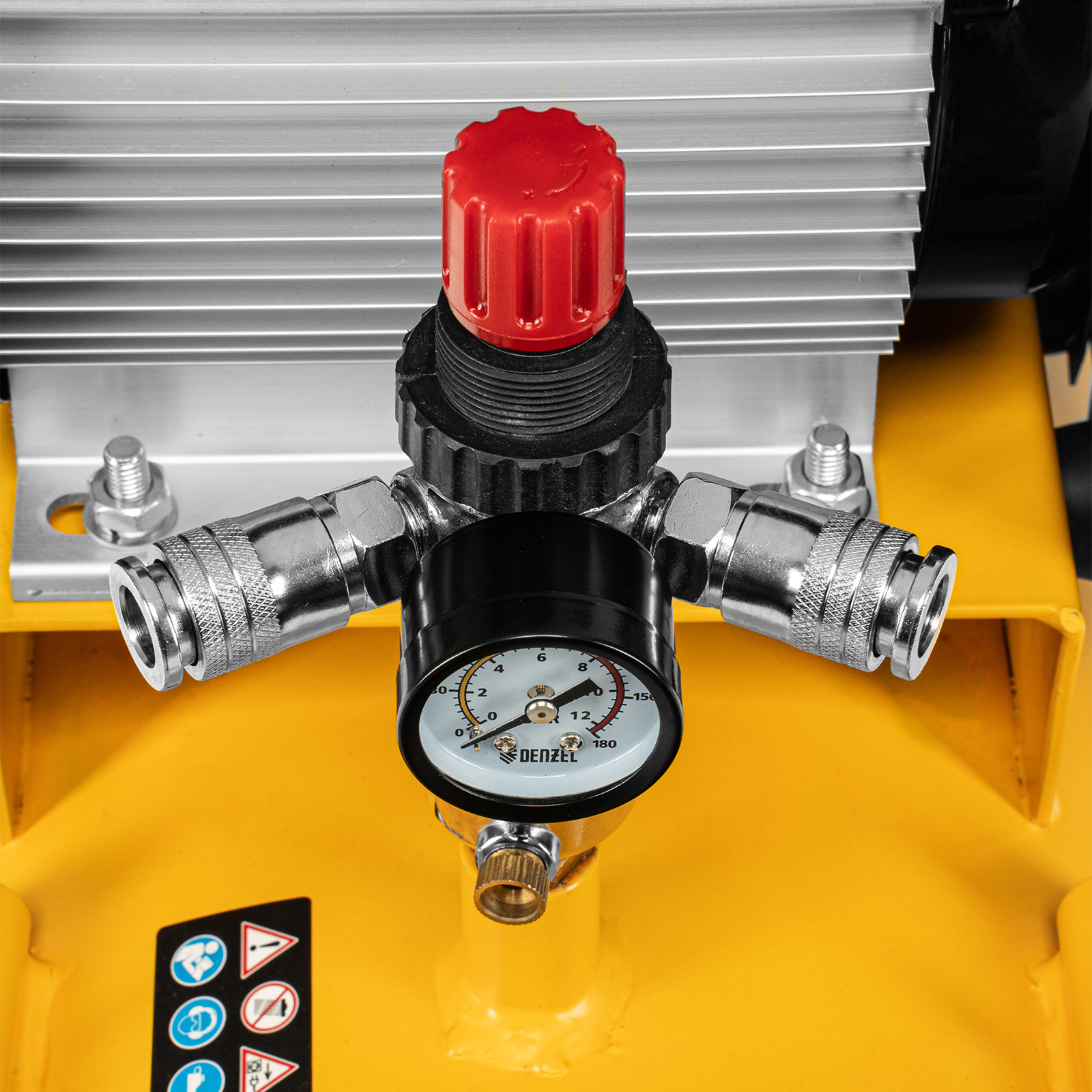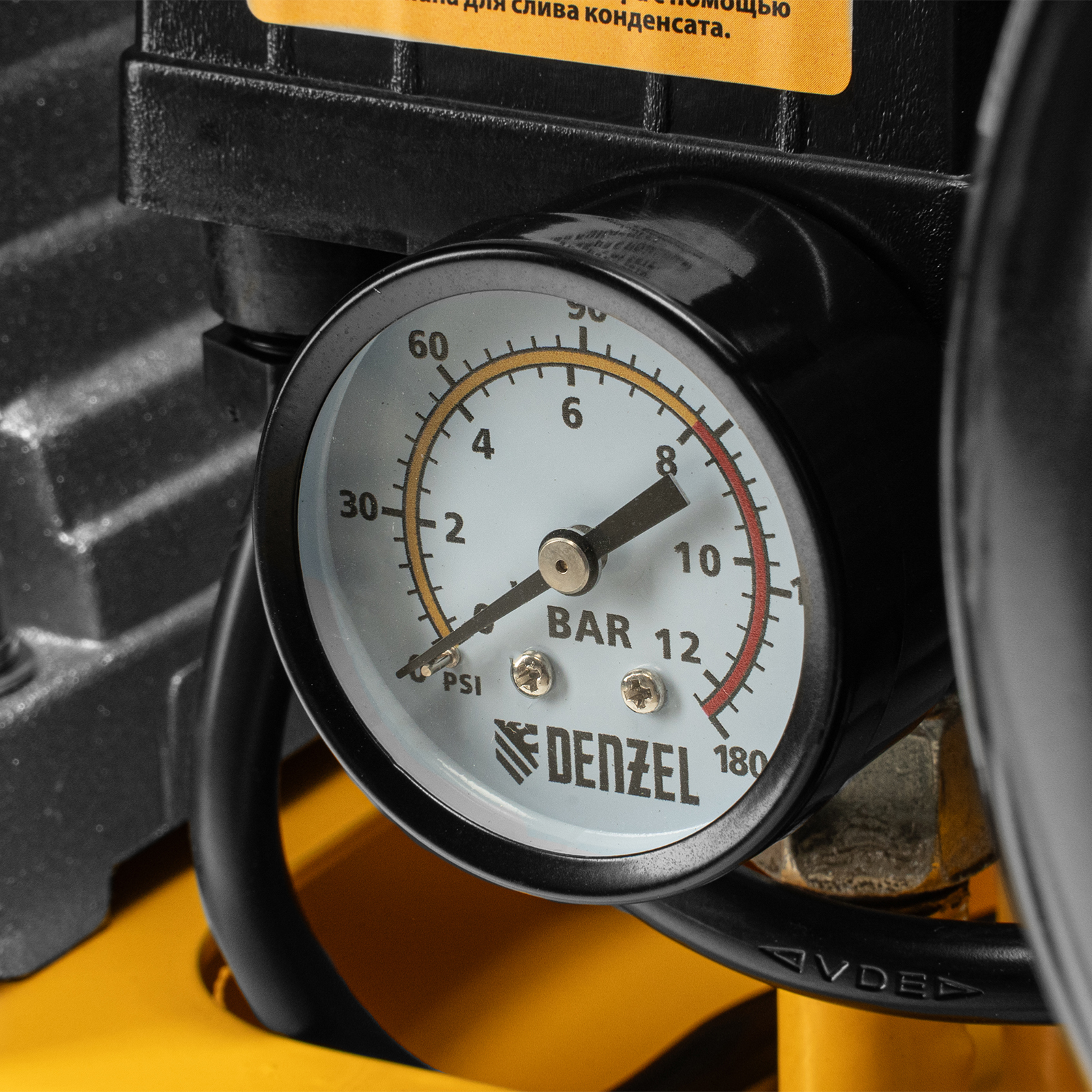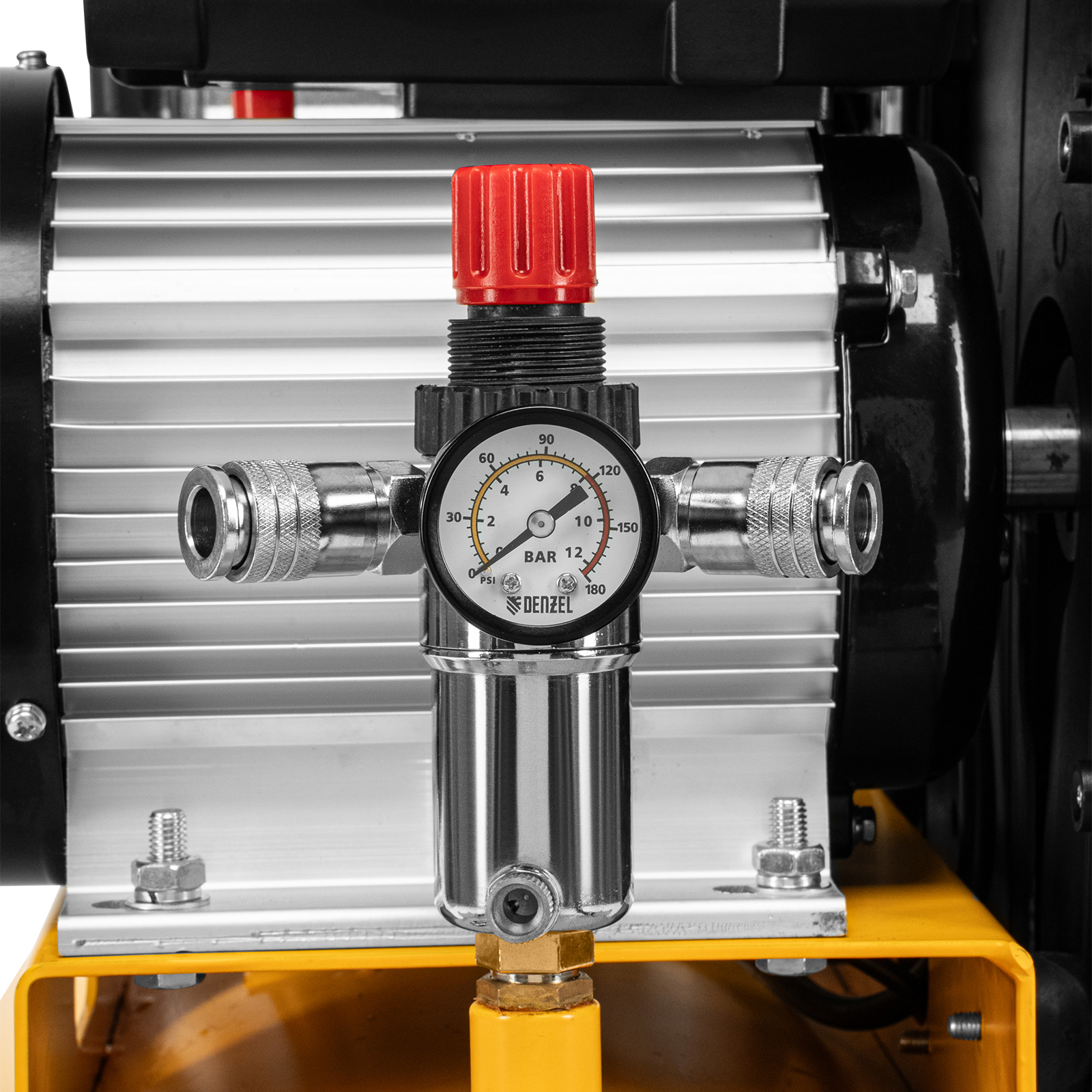 - Удобный контроль давления в ресивере и пневмомагистрали — компрессор оснащен двумя механическими манометрами.