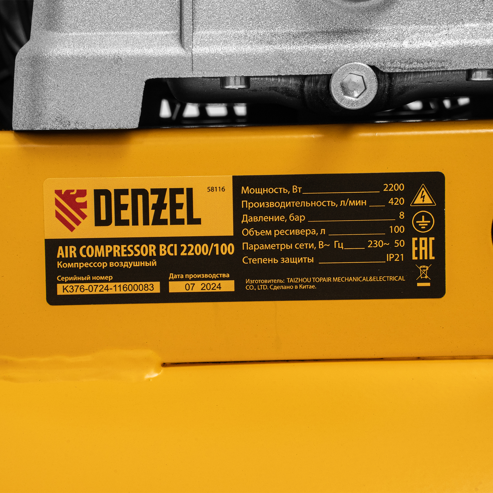 Компрессор воздушный рем. привод BCI 2200/100, 2,2 кВт, 100 литров, 420 л/мин Denzel в Уфе
