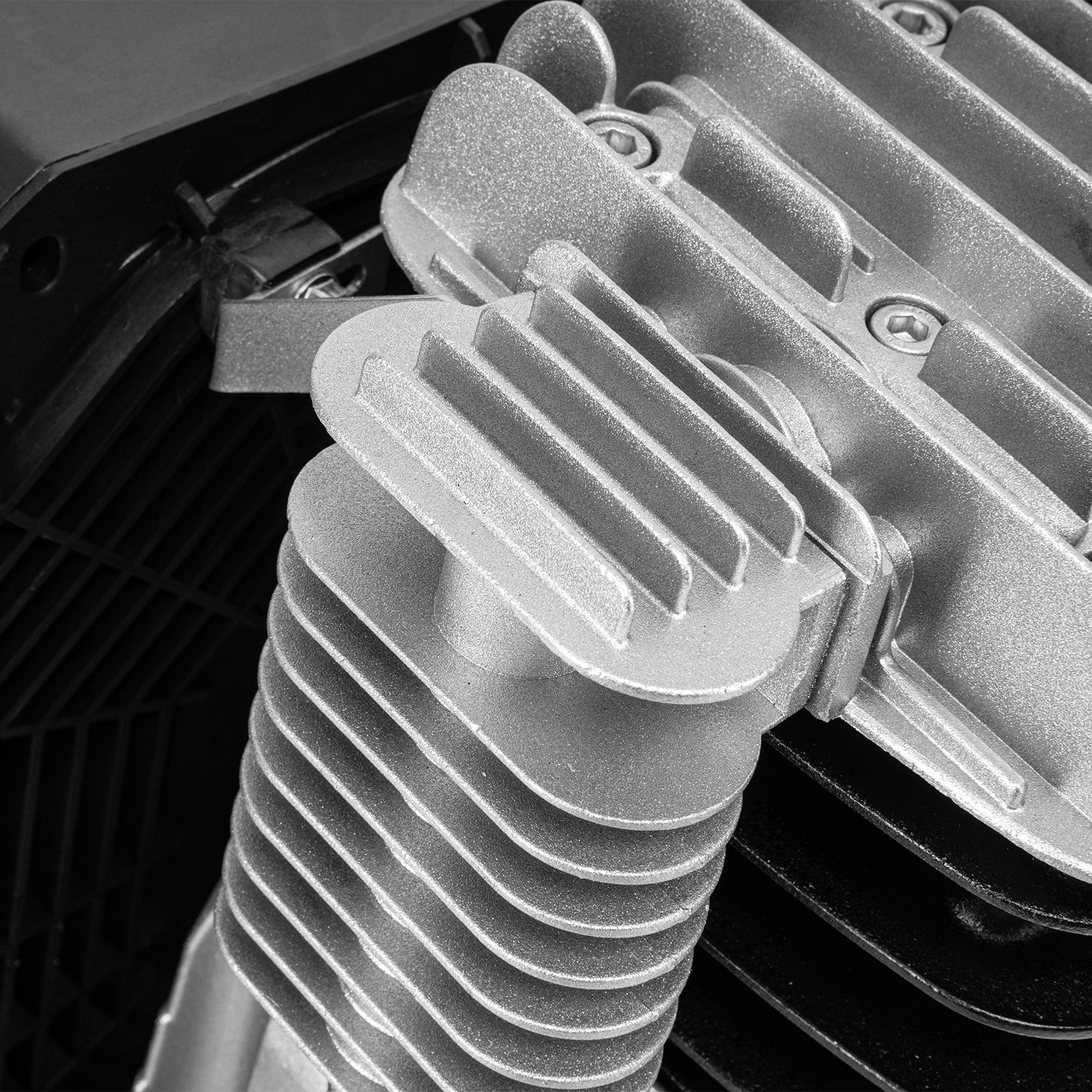 - Высокий ресурс — чугунные цилиндры выдерживают интенсивные нагрузки, увеличенные ребра на них повышают эффективность охлаждения.