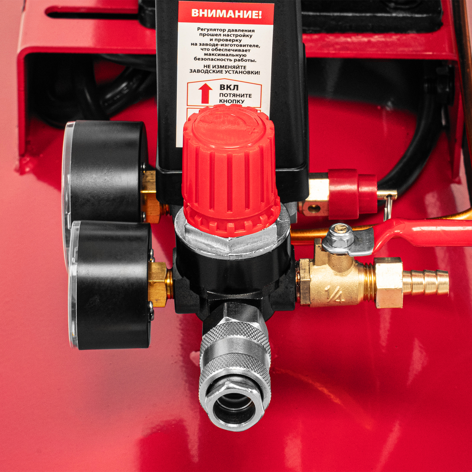 - Безопасная эксплуатация — предохранительный клапан не допускает превышения максимально допустимого давления в ресивере.