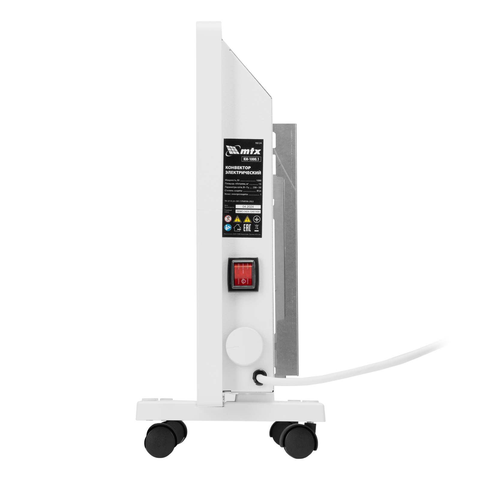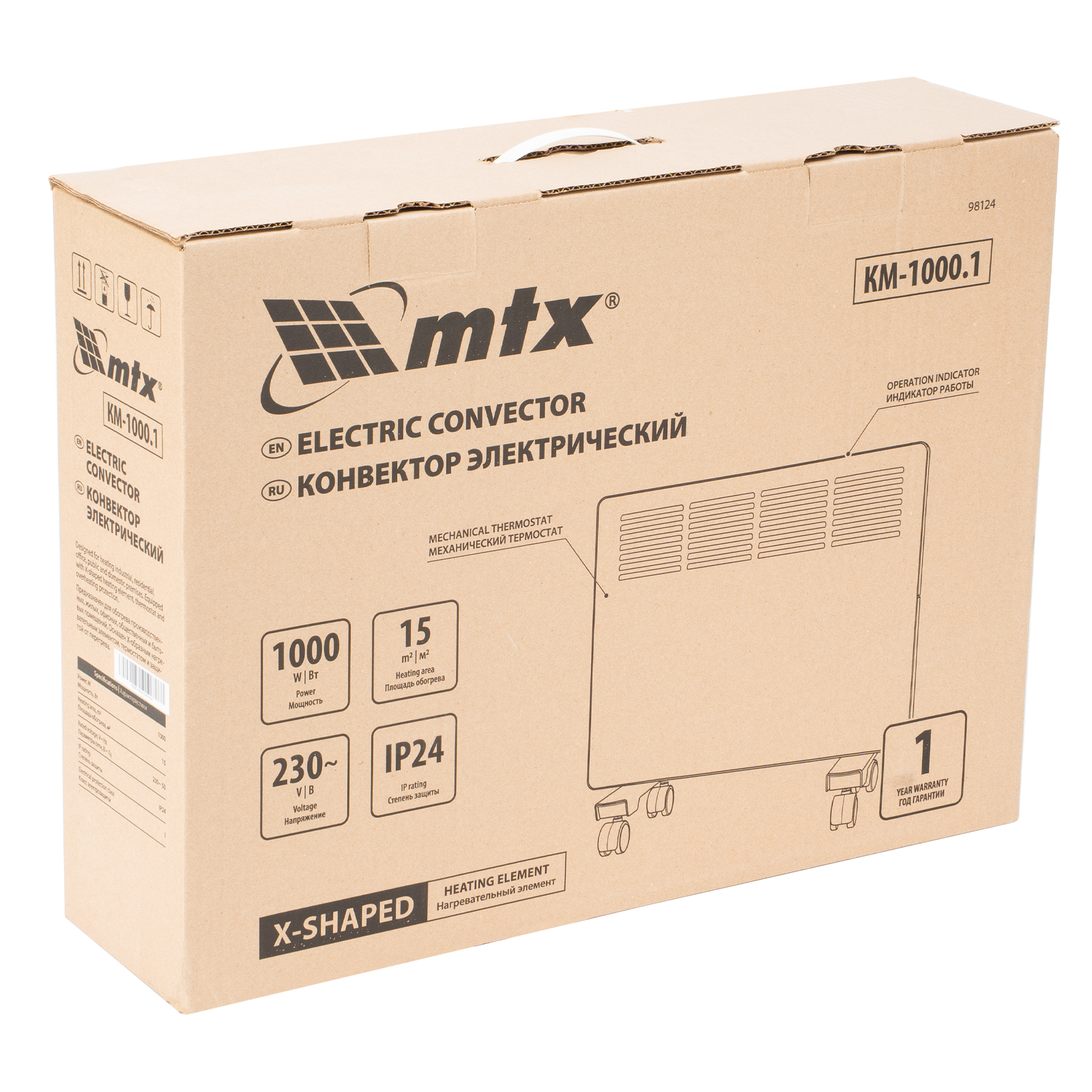 Конвектор электрический КМ-1000.1, 230 В, 1000 Вт, X-образный нагреватель, колеса, термостат MTX в Уфе