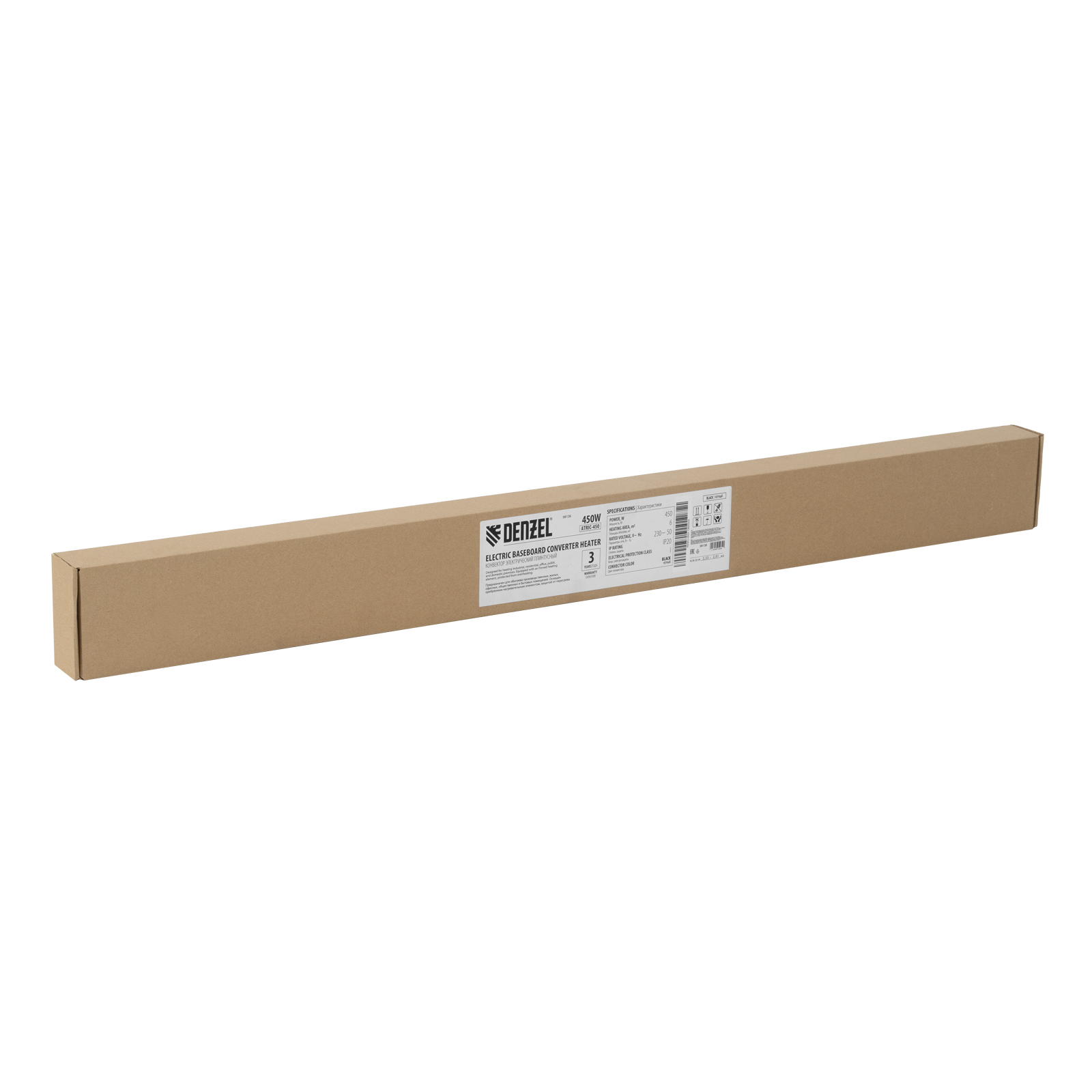 Электрический плинтусный конвектор Denzel ATRIC-450B 98136 черного цвета, мощностью 450 Вт, работает от сети 230 В и предназначен для обогрева закрытых помещений при помощи трубчатого нагревательного элемента (ТЭН). Площадь обогрева составляет 6 м2. Оребренный нагревательный элемент обеспечивает увеличенную площадь контакта с окружающей средой, что повышает скорость нагрева воздуха. Конвектор пригодится в квартире, офисе и на производстве.