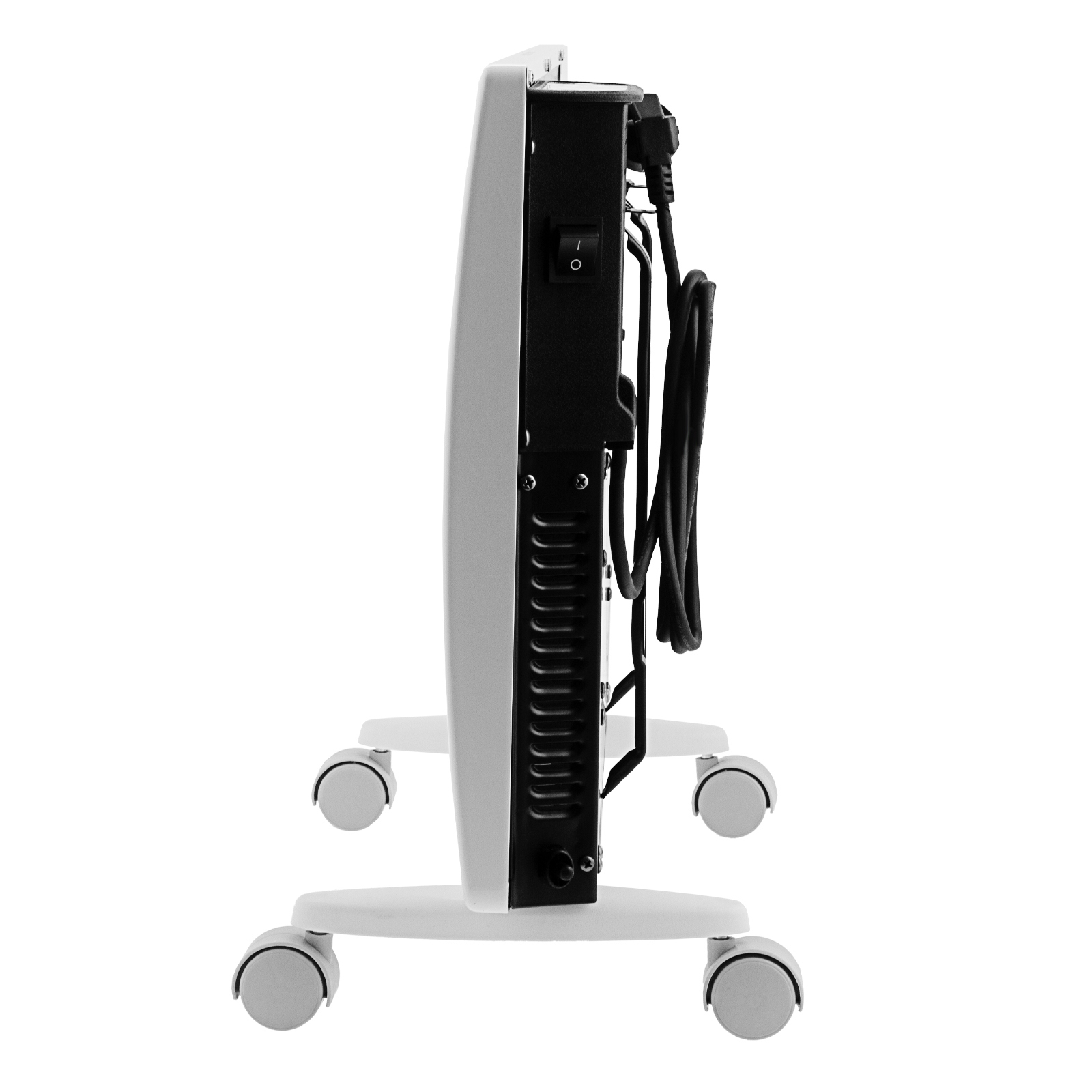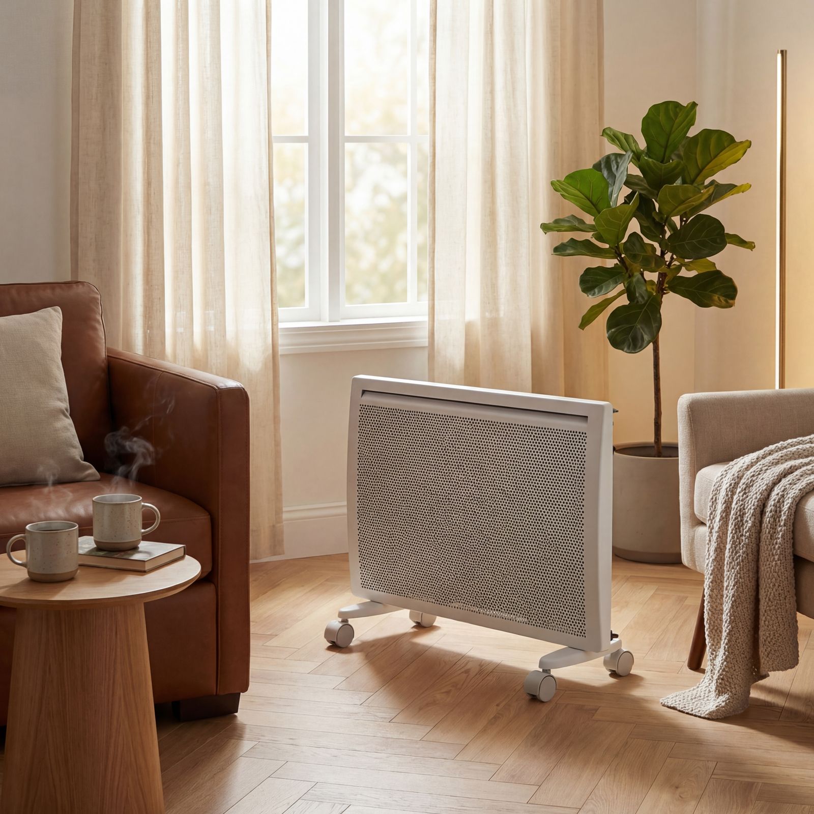 - Высокая энергоэффективность — гибридный нагревательный элемент излучает инфракрасное тепло и одновременно обеспечивает конвекцию воздуха, что позволяет прогревать помещение заметно быстрее при тех же затратах энергии.
