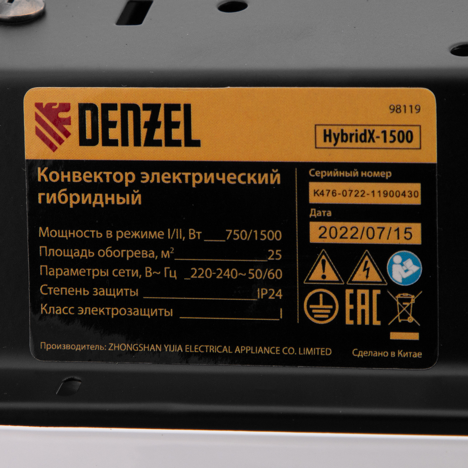 Конвектор гибридный электрический HybridX-1500, ИК нагреватель, цифровой термостат Denzel в Уфе