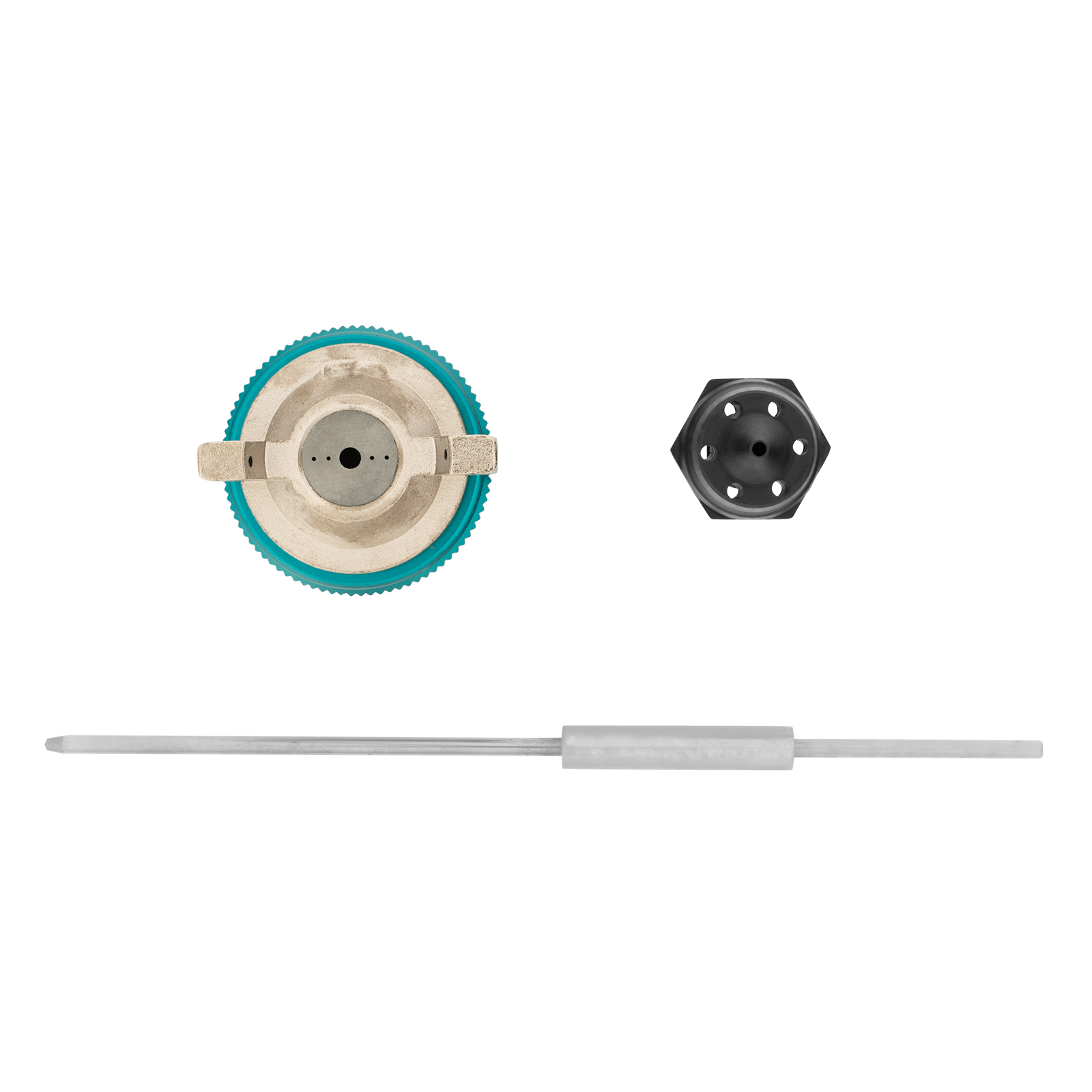 - Широкая комплектация — к краскораспылителю прилагается дополнительный дюзовый комплект (сопло, воздушная форсунка и игла), универсальный ключ и удобный ершик для быстрой очистки.