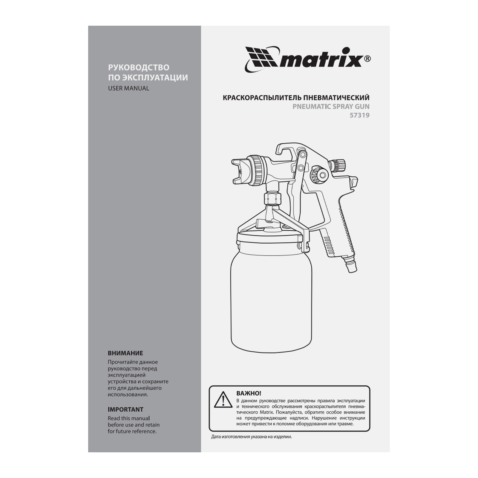 Краскораспылитель HVLP пневмат. с нижним бачком V= 1 л, сопло диаметром 1.4 мм Matrix в Уфе