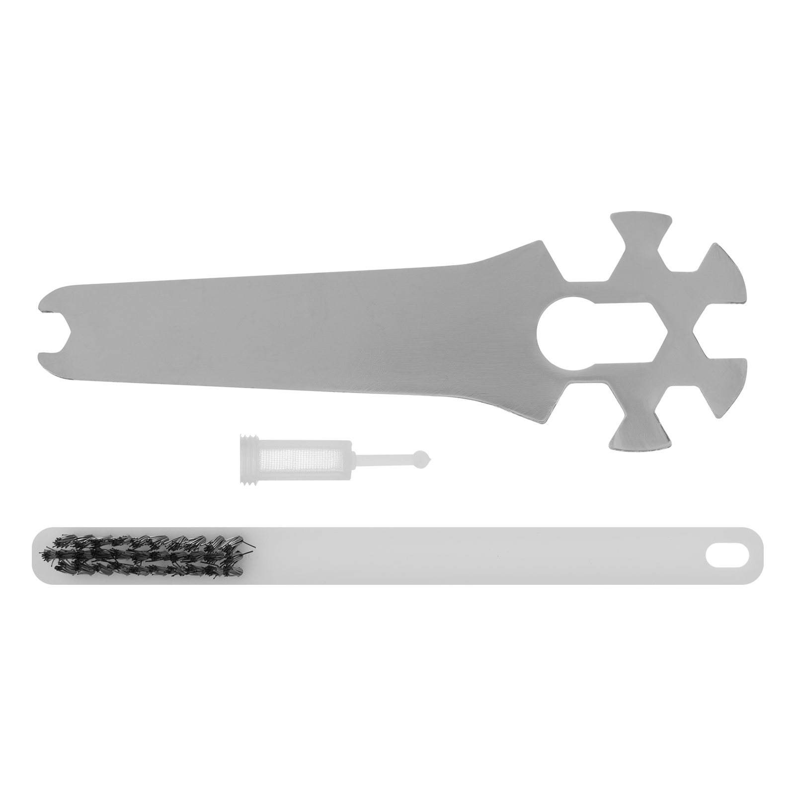 Краскораспылитель с бачком - 1 штШтуцер - 1 штСменное сопло диаметром 0,8 мм - 1 штРуководство по эксплуатации и гарантийный талон - 1 шт |