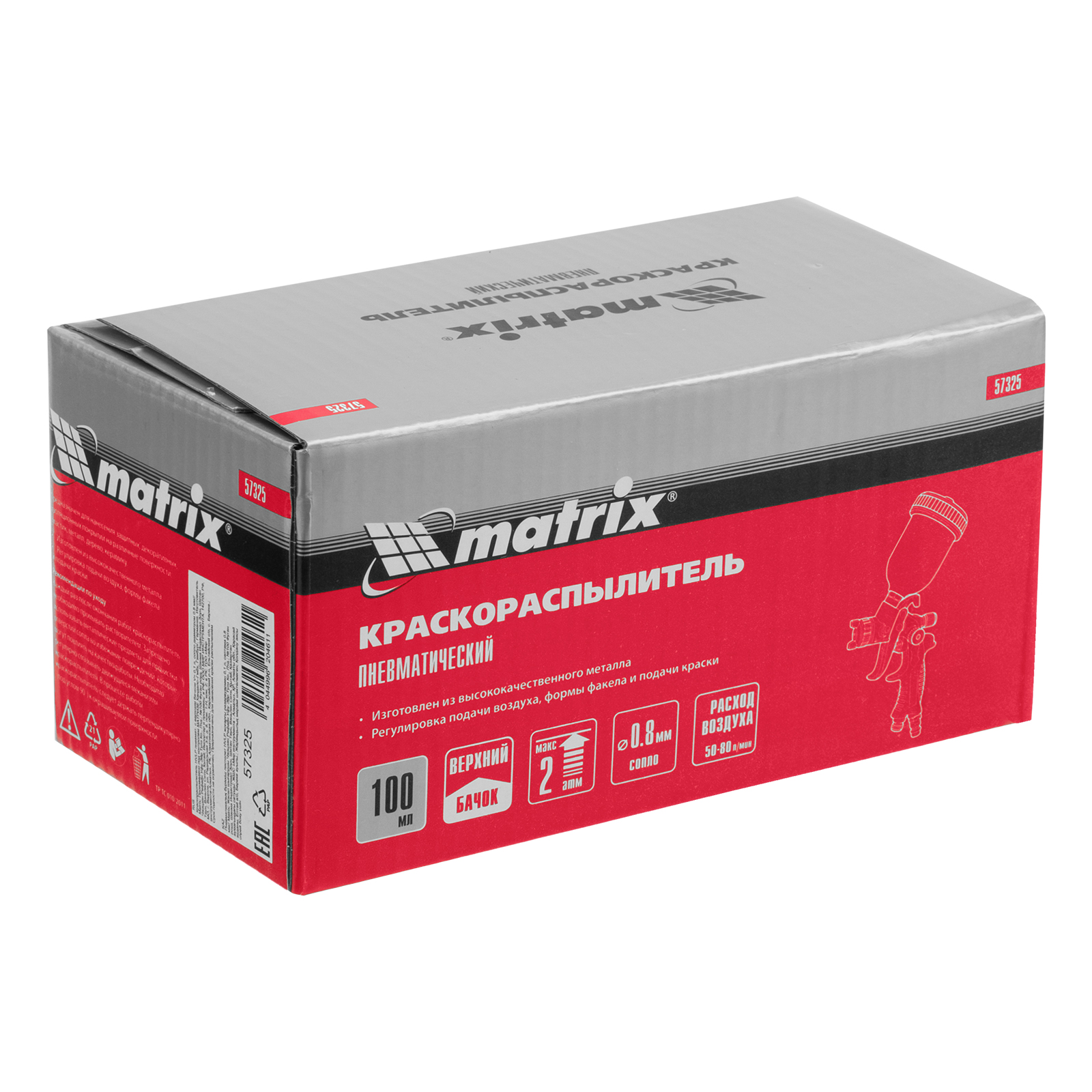 Краскораспылитель HVLP пневмат. с верхним бачком V= 0,1 л, сопло диаметром 0.8 мм Matrix в Уфе