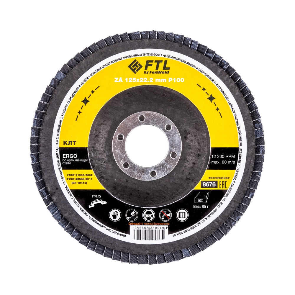 Лепестковый диск для шлифования по нержавеющей стали FTL Ergo 27 125 х 22,2 мм P100 – это расходный материал для ручной угловой шлифовальной машины при работе с изделиями из нержавеющей стали, черных и цветных металлов. Также подходит для обработки твёрдых пород дерева, пластика и полиуретана. Диск предназначен для зачистки и шлифовки сварных швов и кромок стальных заготовок, обработки изделий из нержавеющей стали и полиуретана, шлифовки твёрдых пород дерева. Рабочая поверхность плоского диска ровная и в основном применяется для обработки плоскости и внешних угловых соединений. Оптимальный угол работы для плоского КЛТ – от 0° до 15°. Плоские КЛТ лучше всего подходят для подготовки поверхности и финишной обработки. Удаление материала и финиш происходят за один шаг, что снижает время обработки. Серия ERGO — это универсальный состав из оксида циркония для работы с изделиями из нержавеющей стали. Оксид циркония с лучшей теплопроводностью эффективно отводит тепло из зоны реза, противостоит прижогу и перегреву, сохраняя легирующие свойства нержавеющей стали. Оптимальная формула абразива обеспечивает хороший зацеп с неплохой износостойкостью.ИЗНОСОСТОЙКОСТЬ: Благодаря премиальной формуле режущая и шлифовальная способность абразива снижается в процессе работы значительно медленнее, позволяя выполнить больше работы.ЭФФЕКТИВНАЯ РАБОТА С СИЛЬНЫМ ПРИЖИМОМ: Машинная сборка при производстве исключает ошибки при наклеивании лепестков на основание диска, а плотная набивка обеспечивает более сильный прижим во время работы.САМОЗАТАЧИВАЮЩИЙСЯ АБРАЗИВ: Оксид циркония (циркониевый электрокорунд, цирконий) – это вид абразивного зерна, которое имеет свойство самозатачивания благодаря кристаллической «чешуйчатой» структуре. Зерно циркония в процессе работы постоянно скалывается, из-за чего на поверхности шлифовальной бумаги грани всё время остаются острыми. При этом поверхность заготовки однородна, а зерно скалывается вплоть до момента полного износа, что и обеспечивает высокий ресурс работы инструмента.ВЫСОКОКАЧЕСТВЕННЫЙ ОКСИД ЦИРКОНИЯ: Оптимальное соотношение корунда и самозатачивающихся зёрен оксида циркония позволяют эффективно работать с металлом, деревом и пластиком.ДВОЙНОЕ МЕТАЛЛИЧЕСКОЕ КОЛЬЦО: Двойное металлическое кольцо на диске обеспечивает плотную посадку на фланец УШМ, исключая биения и вибрацию при работе.ПРЕИМУЩЕСТВА:Универсальный (по нержавеющей стали и чёрному металлу)Оксид цирконияМинимальное содержание железа, серы, хлора (не окисляет стали)Тип 27 (куполообразный, с плоской поверхностью)Электростатический метод нанесения абразиваЭффект самозатачиванияВозможность работы с большим прижимом (требуется мощная УШМ)Фибергласс – прочное стекловолоконное основание дискаДвойное металлическое кольцо для плотной посадки на фланец УШМВлагозащитная упаковкаФУНКЦИОНАЛЬНЫЕ ОСОБЕННОСТИ:ГЕРМЕТИЧНОСТЬ УПАКОВКИ: Диски упакованы в специальную термоусадочную герметичную плёнку, которая предохраняет от пыли и влаги при длительном хранении в условиях повышенной влажности, на строительных объектах и крупных промышленных производствах.КОМПЛЕКТАЦИЯ: Круг лепестковый для шлифования по нержавеющей стали FTL Ergo 27 125 х 22,2 мм P100 в термоусадочной плёнке со вкладышем в дополнительном ПЭ пакете – 10 шт.