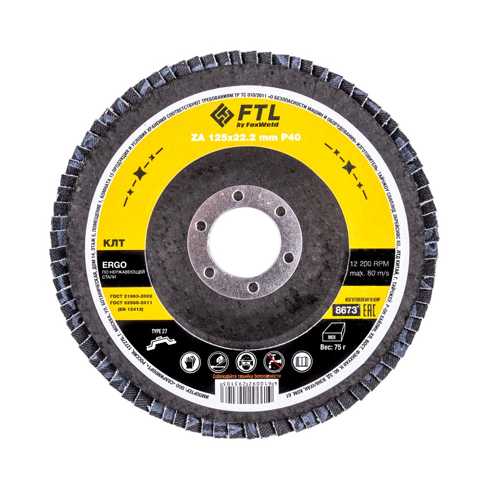 Круг лепестковый для шлифования по нержавеющей стали FTL Ergo цирконий 27 125 х 22,2 мм P40 в Уфе