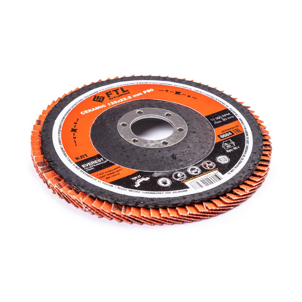 Лепестковый диск для шлифования по нержавеющей стали FTL Everest 27 125 х 22,2 мм P60 – это расходный материал для ручной угловой шлифовальной машины при работе с изделиями из нержавеющей стали, твёрдых сплавов, легированной стали. Диск предназначен для зачистки и шлифовки стальных заготовок, снятия усиления сварного шва, съёма металла, удаления окалины и заусенцев. Рабочая поверхность плоского диска ровная и в основном применяется для обработки плоскости и внешних угловых соединений. Оптимальный угол работы для плоского КЛТ – от 0° до 15°. Плоские КЛТ лучше всего подходят для подготовки поверхности и финишной обработки. Удаление материала и финиш происходят за один шаг, что снижает время обработки. Серия EVEREST — это премиальный инновационный керамический абразив для работы исключительно по изделиям из нержавеющей стали. Электростатический метод нанесения обеспечивает расположение всех абразивных зёрен острыми режущими кромками вверх, перпендикулярно основе. В процессе работы керамические зёрна постоянно сохраняют острую режущую кромку, а отличная теплопроводность керамики наиболее эффективно предотвращает перегрев, что также увеличивает время работы абразива.ИЗНОСОСТОЙКОСТЬ: Благодаря премиальной формуле режущая и шлифовальная способность абразива снижается в процессе работы значительно медленнее, позволяя выполнить больше работы.ЭФФЕКТИВНАЯ РАБОТА С СИЛЬНЫМ ПРИЖИМОМ: Машинная сборка при производстве исключает ошибки при наклеивании лепестков на основание диска, а плотная набивка обеспечивает более сильный прижим во время работы.САМОЗАТАЧИВАЮЩИЙСЯ АБРАЗИВ: Зёрна керамики состоят из ещё более многочисленных и мелких кристаллов по сравнению с оксидом циркония, что обеспечивает ярко выраженный эффект самозатачивания и скалывания в процессе работы. Керамические зёрна постоянно сохраняют острую режущую кромку, а отличная теплопроводность керамики предотвращает перегрев, что также увеличивает время работы абразива. По некоторым исследованиям, керамическое зерно работает в 2 раза агрессивнее, и в 10 раз дольше. чем оксид алюминия.ПРЕМИАЛЬНЫЙ КЕРАМИЧЕСКИЙ АБРАЗИВ: Премиальный компаунд на базе керамического абразива сохраняет остроту режущих кромок до полного износа, не перегревается даже при сильном прижиме и обладает эффектом самозатачивания.ДВОЙНОЕ МЕТАЛЛИЧЕСКОЕ КОЛЬЦО: Двойное металлическое кольцо на диске обеспечивает плотную посадку на фланец УШМ, исключая биения и вибрацию при работе.ПРЕИМУЩЕСТВА:По нержавеющей стали (!)Керамический абразив (лучший по износостойкости и теплопроводности)Минимальное содержание железа, серы, хлораТип 27 (куполообразный, с плоской поверхностью)Электростатический метод нанесения абразиваНаилучший эффект самозатачиванияВозможность работы с большим прижимом (требуется мощная УШМ)Двойное металлическое кольцо для плотной посадки на фланец УШМДвойная влагозащитная упаковкаФУНКЦИОНАЛЬНЫЕ ОСОБЕННОСТИ:ГЕРМЕТИЧНОСТЬ УПАКОВКИ: Диски упакованы в специальную термоусадочную герметичную плёнку, которая предохраняет от пыли и влаги при длительном хранении в условиях повышенной влажности, на строительных объектах и крупных промышленных производствах.КОМПЛЕКТАЦИЯ: Круг лепестковый для шлифования по нержавеющей стали FTL Everest 27 125 х 22,2 мм P60 в термоусадочной плёнке со вкладышем