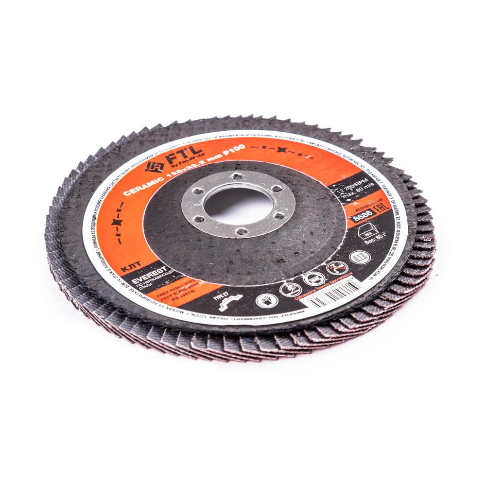 Лепестковый диск для шлифования по нержавеющей стали FTL Everest 27 125 х 22,2 мм P100 – это расходный материал для ручной угловой шлифовальной машины при работе с изделиями из нержавеющей стали, твёрдых сплавов, легированной стали. Диск предназначен для зачистки и шлифовки стальных заготовок, снятия усиления сварного шва, съёма металла, удаления окалины и заусенцев. Рабочая поверхность плоского диска ровная и в основном применяется для обработки плоскости и внешних угловых соединений. Оптимальный угол работы для плоского КЛТ – от 0° до 15°. Плоские КЛТ лучше всего подходят для подготовки поверхности и финишной обработки. Удаление материала и финиш происходят за один шаг, что снижает время обработки. Серия EVEREST — это премиальный инновационный керамический абразив для работы исключительно по изделиям из нержавеющей стали. Электростатический метод нанесения обеспечивает расположение всех абразивных зёрен острыми режущими кромками вверх, перпендикулярно основе. В процессе работы керамические зёрна постоянно сохраняют острую режущую кромку, а отличная теплопроводность керамики наиболее эффективно предотвращает перегрев, что также увеличивает время работы абразива.ИЗНОСОСТОЙКОСТЬ: Благодаря премиальной формуле режущая и шлифовальная способность абразива снижается в процессе работы значительно медленнее, позволяя выполнить больше работы.ЭФФЕКТИВНАЯ РАБОТА С СИЛЬНЫМ ПРИЖИМОМ: Машинная сборка при производстве исключает ошибки при наклеивании лепестков на основание диска, а плотная набивка обеспечивает более сильный прижим во время работы.САМОЗАТАЧИВАЮЩИЙСЯ АБРАЗИВ: Зёрна керамики состоят из ещё более многочисленных и мелких кристаллов по сравнению с оксидом циркония, что обеспечивает ярко выраженный эффект самозатачивания и скалывания в процессе работы. Керамические зёрна постоянно сохраняют острую режущую кромку, а отличная теплопроводность керамики предотвращает перегрев, что также увеличивает время работы абразива. По некоторым исследованиям, керамическое зерно работает в 2 раза агрессивнее, и в 10 раз дольше. чем оксид алюминия.ПРЕМИАЛЬНЫЙ КЕРАМИЧЕСКИЙ АБРАЗИВ: Премиальный компаунд на базе керамического абразива сохраняет остроту режущих кромок до полного износа, не перегревается даже при сильном прижиме и обладает эффектом самозатачивания.ДВОЙНОЕ МЕТАЛЛИЧЕСКОЕ КОЛЬЦО: Двойное металлическое кольцо на диске обеспечивает плотную посадку на фланец УШМ, исключая биения и вибрацию при работе.ПРЕИМУЩЕСТВА:По нержавеющей стали (!)Керамический абразив (лучший по износостойкости и теплопроводности)Минимальное содержание железа, серы, хлораТип 27 (куполообразный, с плоской поверхностью)Электростатический метод нанесения абразиваНаилучший эффект самозатачиванияВозможность работы с большим прижимом (требуется мощная УШМ)Двойное металлическое кольцо для плотной посадки на фланец УШМДвойная влагозащитная упаковкаФУНКЦИОНАЛЬНЫЕ ОСОБЕННОСТИ:ГЕРМЕТИЧНОСТЬ УПАКОВКИ: Диски упакованы в специальную термоусадочную герметичную плёнку, которая предохраняет от пыли и влаги при длительном хранении в условиях повышенной влажности, на строительных объектах и крупных промышленных производствах.КОМПЛЕКТАЦИЯ: Круг лепестковый для шлифования по нержавеющей стали FTL Everest 27 125 х 22,2 мм P100 в термоусадочной плёнке со вкладыше