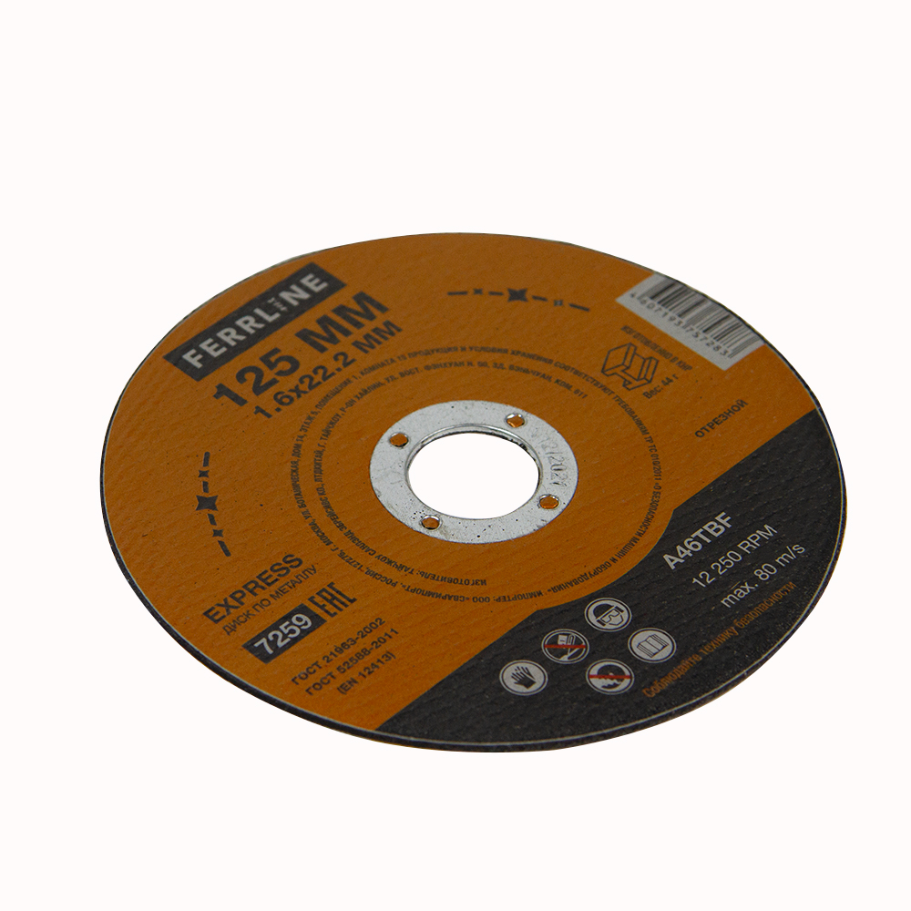 • Круг отрезной по металлу FerrLine Express 125 х 1,6 х 22,2 мм A46TBF купить в Москве с доставкой по всей России | ProtosMarket.ru