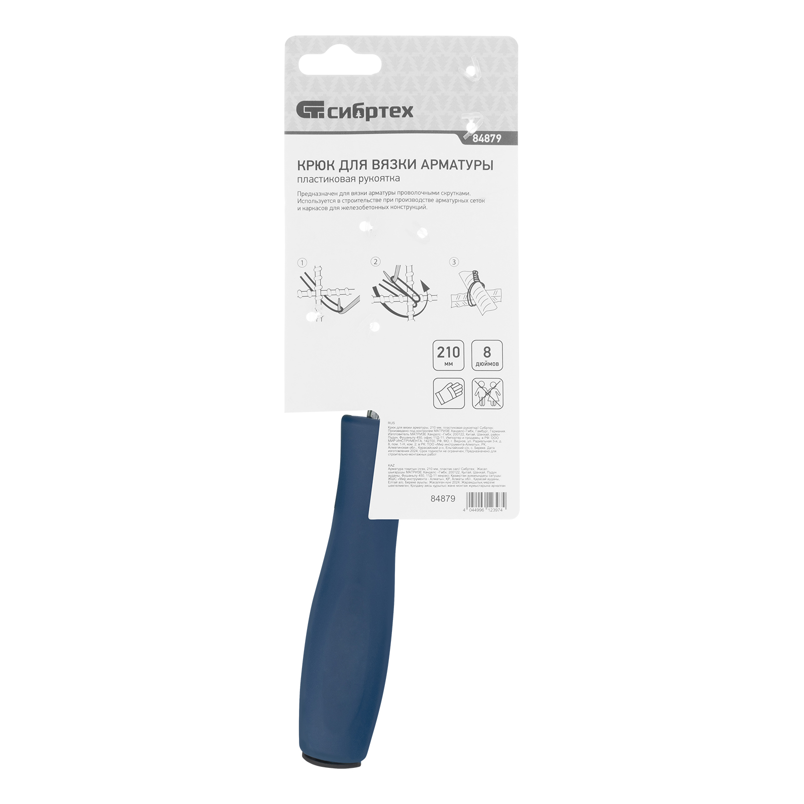 Крюк для вязки арматуры, 210 мм, пластиковая рукоятка Сибртех в Уфе