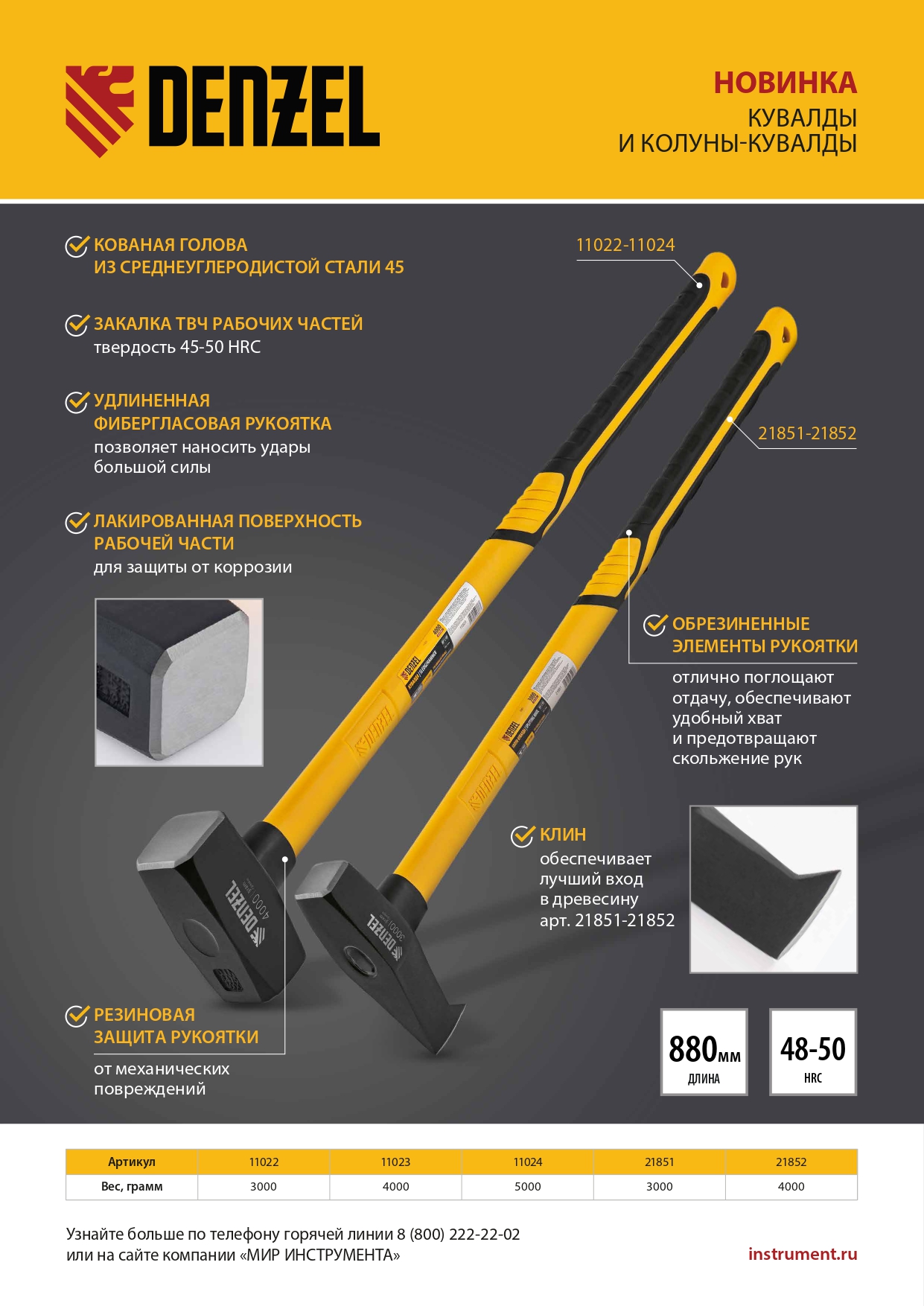 Кувалда 3000 г, кованая, фибергласовая рукоятка c TPR покрытием, 880 мм Denzel в Уфе