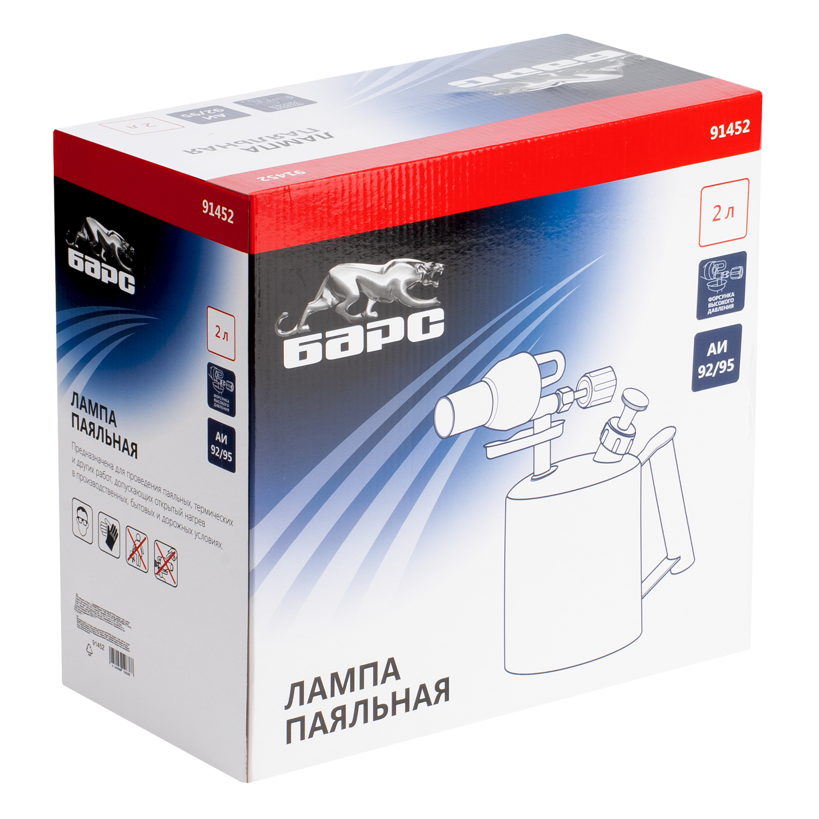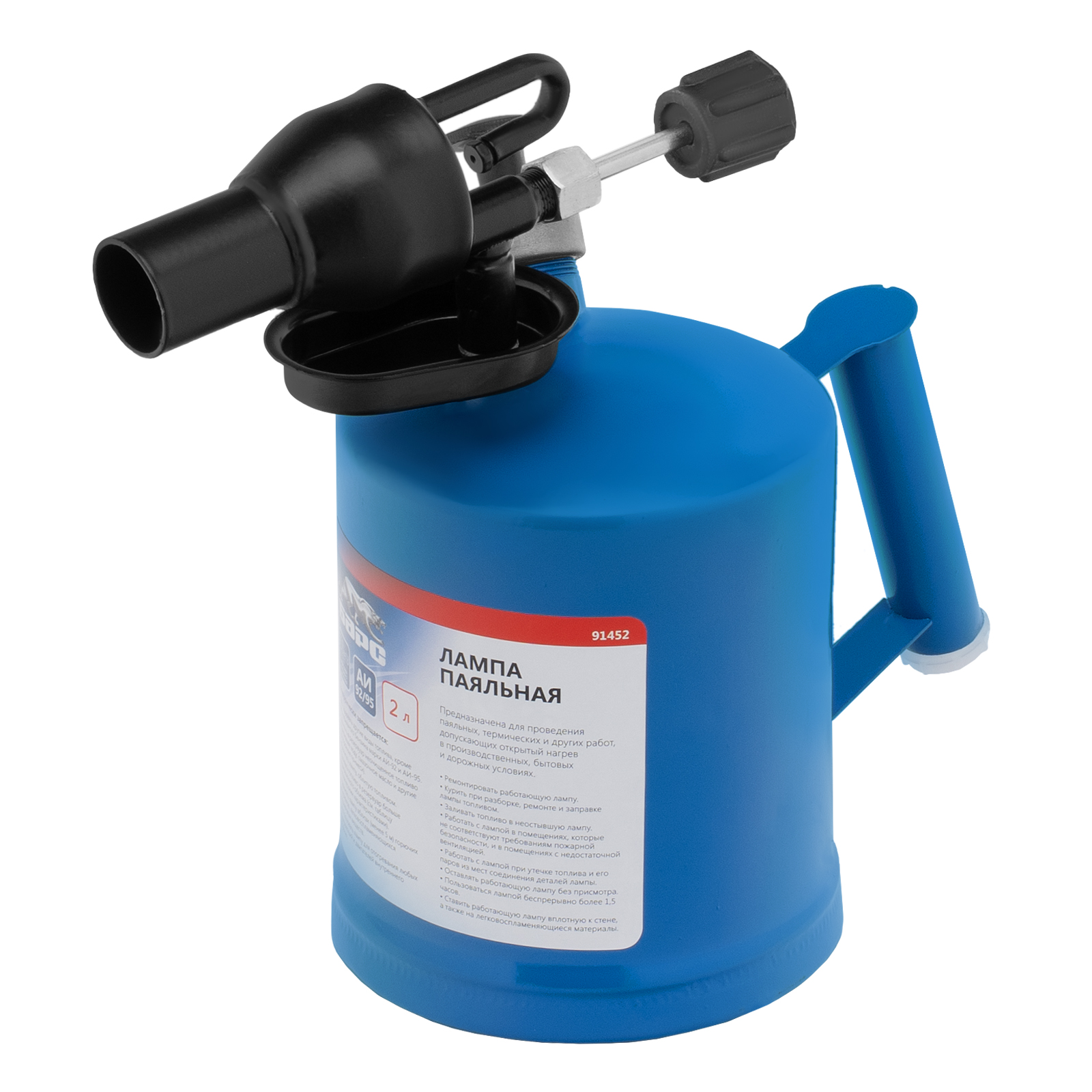 Паяльная лампа Барс 91452 с объемом бака 2 л предназначена для нагрева поверхностей при помощи открытого направленного пламени. Полной заправки 1,5 л топлива хватает больше чем на час работы при расходе 1,2 л/ч. Устройство используется для выполнения ремонтных и демонтажных работ — для пайки, термообработки деталей, установки термоусадочных трубок, снятия лакокрасочного покрытия. Также лампа будет полезна в сельском хозяйстве и в быту.