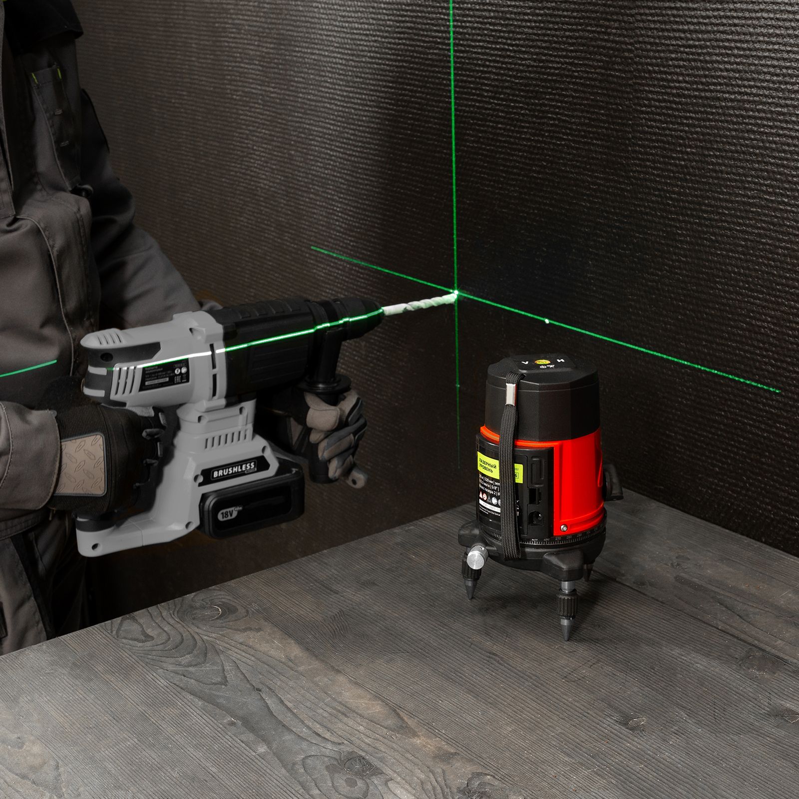 Лазерный уровень MTX CRX-30G 35032 с зеленым лучом, резьбой под штатив 5/8″, в комплекте с батарейками, проецирует на поверхность горизонтальную, вертикальную линии или крест дальностью до 30 м. Используется при проведении бытовых ремонтно-строительных работ в помещениях. Погрешность измерений составляет всего лишь ±1,5 мм 5 м.