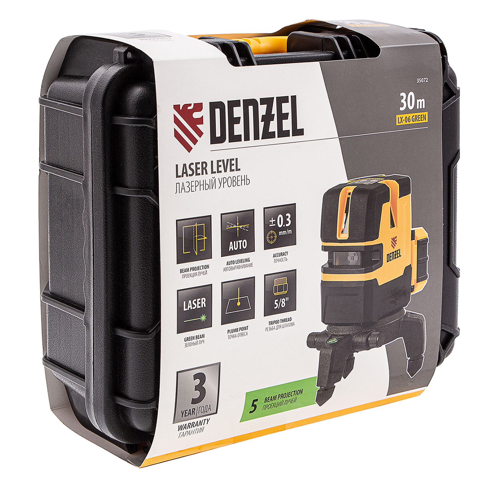 Лазерный уровень LX 06 Green, 30 м, 520 нм, аккумулятор Li 5200 mAh, резьба 5/8" Denzel в Уфе