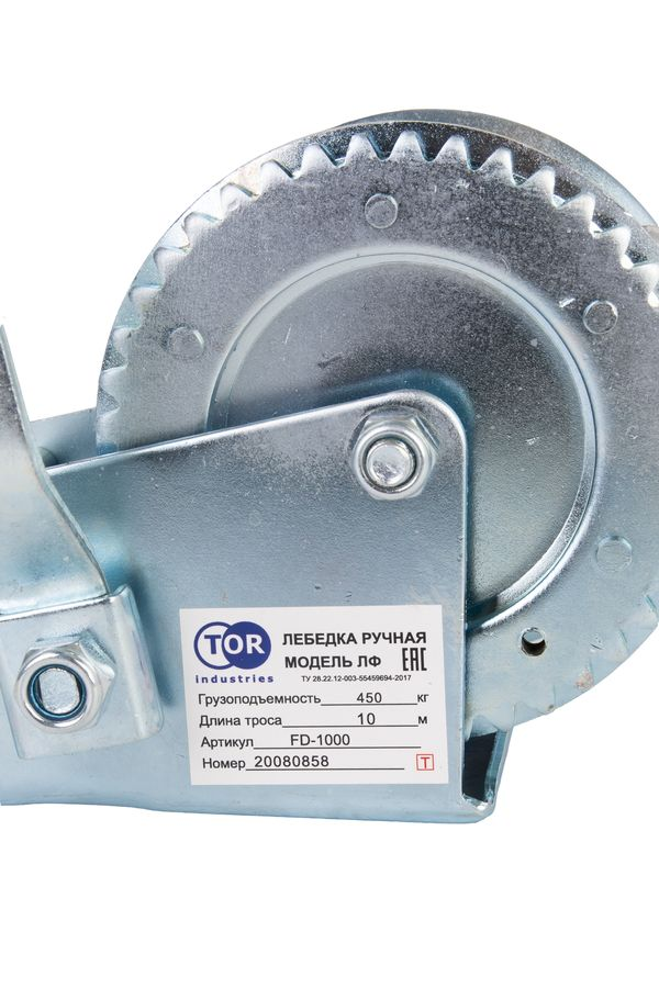 Лебедка ручная барабанная с тросом 400кг 10м оцинкованная TOR FD в Уфе
