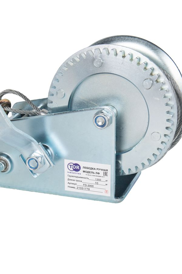 Лебедка ручная барабанная с тросом 1300кг 10м оцинкованная TOR FD в Уфе