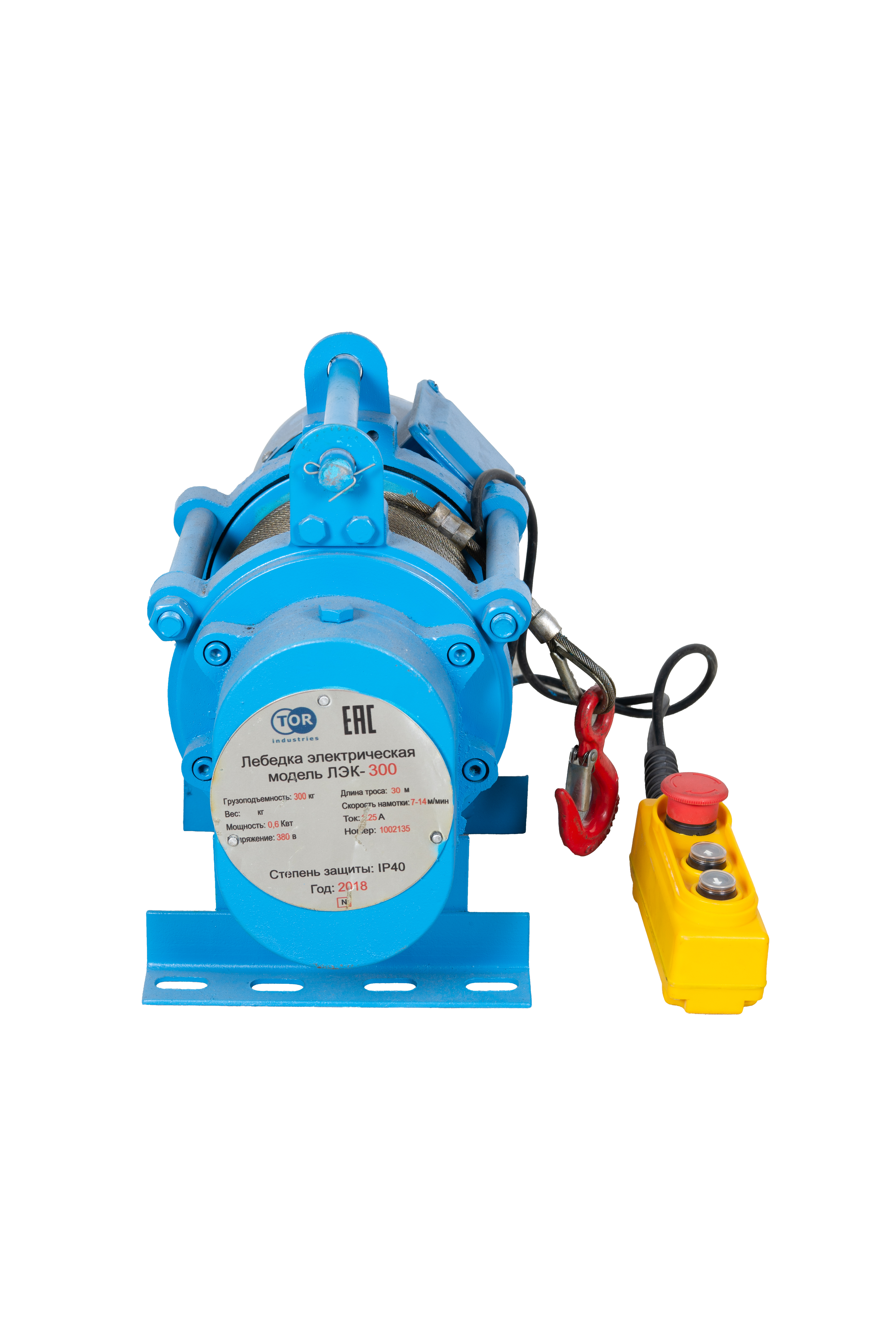 Лебедка электрическая 300 кг 30 м с канатом 380 В TOR KCD (N) в Уфе