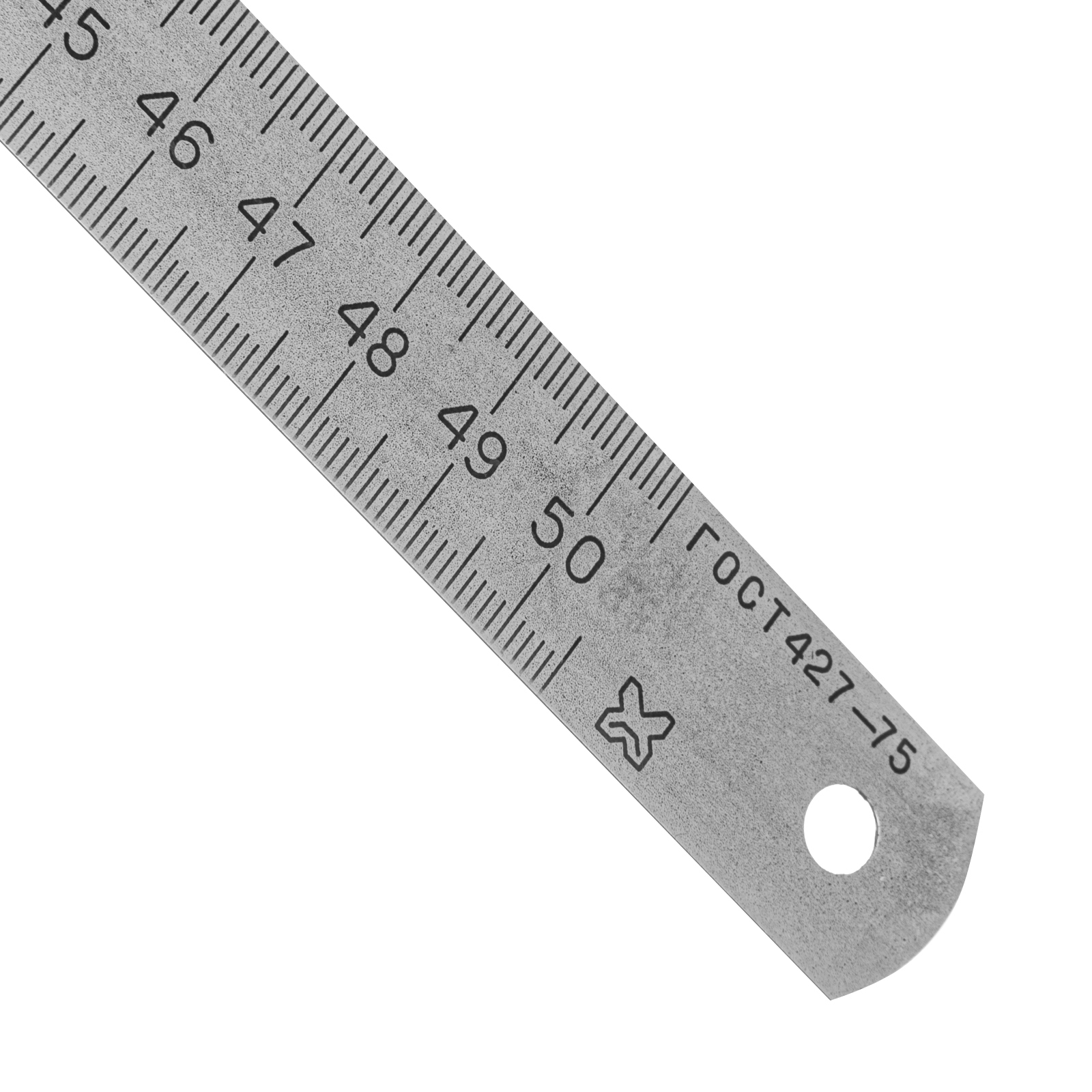 Металлическая измерительная линейка 30562 с пределом измерения 500 мм предназначена для определения размеров деталей, разметки поверхностей и начертания прямых линий. Используется преимущественно во время строительства и ремонта, проектирования, занятий творчеством, в металлообработке, будет полезна дома и в гараже.